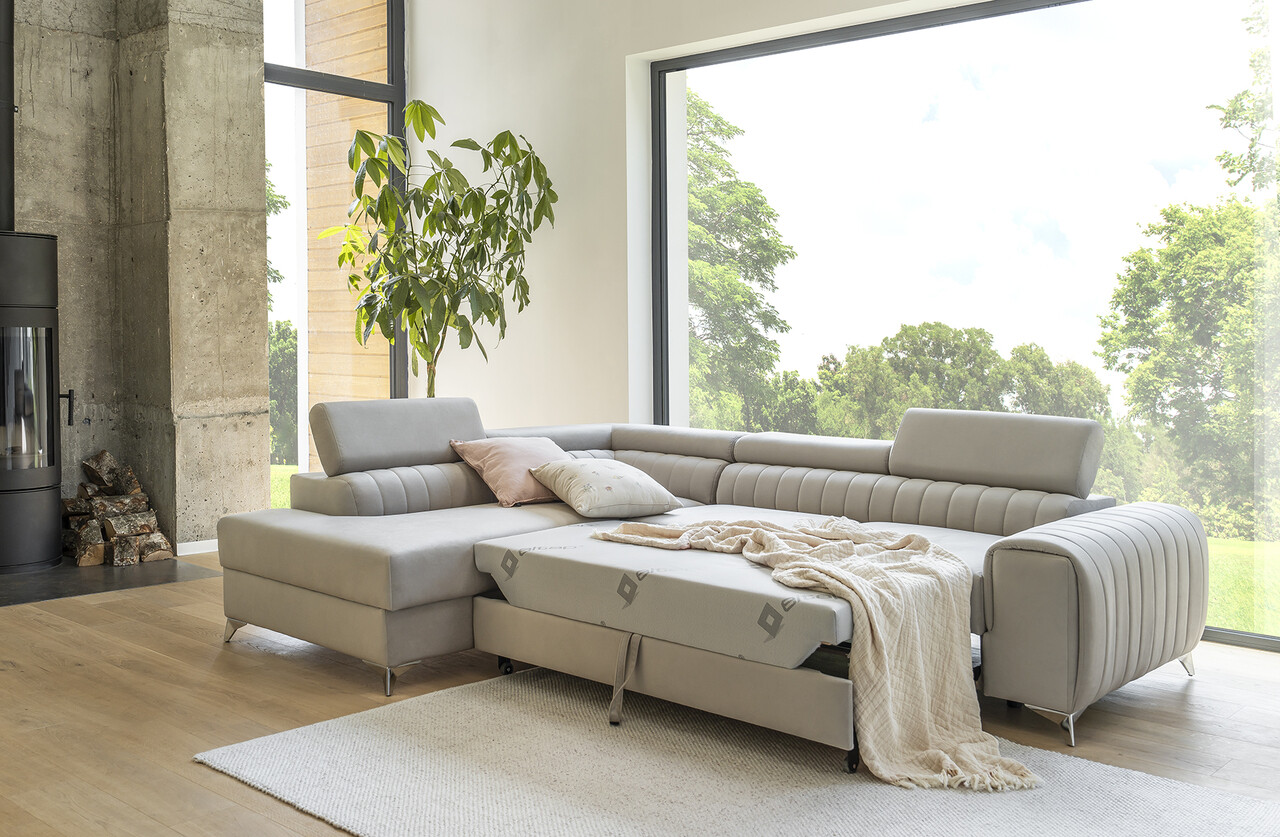 Laurence este un coltar elegant, functional si, mai presus de toate, extrem de confortabil. Designul sau modern este completat de tetierele inalte si reglabile, precum si de bratele late, oferind un sprijin optim pentru relaxare zilnica.Construit cu un sistem de arcuri ondulate tip B, spuma T30 si spuma HR, coltarul asigura un nivel superior de confort, atat in utilizarea de zi cu zi, cat si pe timpul noptii. Datorita mecanismului de extensie tip delfin, acesta se transforma cu usurinta intr-un pat spatios, ideal pentru un somn odihnitor. In plus, dispune de o lada generoasa pentru depozitarea asternuturilor, maximizand astfel functionalitatea.Finisajele de inalta calitate, cusaturile elegante si picioarele din otel de 9 cm confera coltarului un aspect modern si rafinat. Disponibil in toate tesaturile din colectia Eltap, Laurence este alegerea perfecta pentru cei care isi doresc un aer proaspat in decorul interior si un mobilier sofisticat, dar practic.Compozitie materialMaterial tapiterie: 100% poliester (tesatura primara Paros 02).Material cadru: lemn de pinUmplutura sezut: spuma-HRInformatii si dimensiuni specificeAdancime sezut: 56 cmInaltime sezut: 45 cmInaltime picioare: 9 cmPicioare din otel de culoare argintie.Greutatea maxima suportata: 405 kgUmplutura spatar: spuma-T25.Mecanism extindere tip delfin.Suprafata de dormit: 123×193 cmProdusul necesita asamblare, asamblat partial.