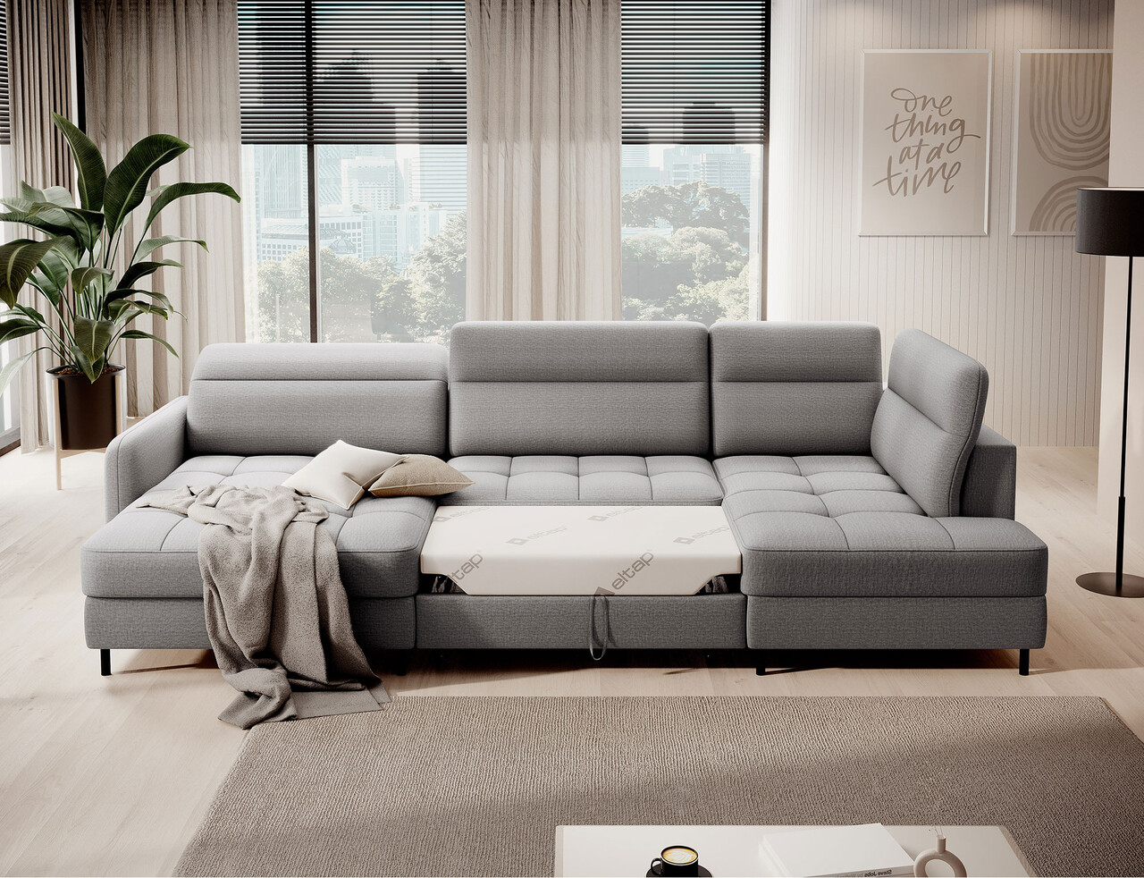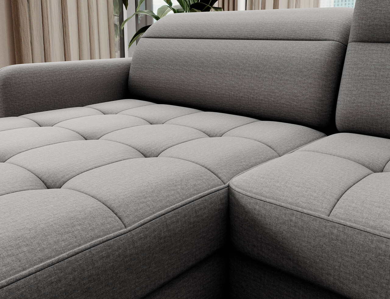 Coltar Berrto este o piesa de mobilier pentru living extrem de sofisticata, creata pentru a va oferi confort si functionalitate exceptionale. Acest coltar elegant combina designul modern cu utilizarea excelenta a componentelor de inalta calitate. Este fabricat folosind arcuri cu valuri de tip B care, impreuna cu spuma HR + T2130, extrem de elastica, creeaza o suprafata a sezutului cu un confort de neegalat. Acest lucru face sezutul moale, flexibil si se adapteaza perfect formei corpului, oferind nu numai relaxare, ci si usurare pentru muschi. Utilizarea curelelor de tapiterie si a spumei T2130 garanteaza durabilitatea si rezistenta la deformare. Nu trebuie sa va faceti griji cu privire la cutele inestetice deoarece acest coltar isi va pastra aspectul original pentru multi ani. Il puteti transforma rapid si usor intr-un pat confortabil, asigurandu-va dumneavoastra si oaspetilor dumneavoastra un somn bun. Coltarul Berrto nu inseamna doar confort, ci si fiabilitate. Durabilitatea sa este impresionanta, atingand o capacitate maxima de 390 kg. Aceasta inseamna ca va puteti bucura de el multi ani fara sa va faceti griji cu privire la durabilitatea acestuia. Coltarul Berrto se distinge nu numai prin functionalitatea sa, ci si prin finisajul sau estetic. Picioarele din otel negru ii confera o senzatie moderna, iar designul elegant il face un element minunat al decorului camerei de zi. Este echipat cu un mecanism de extindere de tip Delfin, usor de utilizat, care va permite sa il transformati rapid intr-un pat confortabil. Este solutia perfecta atunci cand aveti nevoie de un loc de dormit pentru oaspeti. Coltarul Berrto este o piesa de mobilier care imbina luxul, confortul si functionalitatea. Manopera sa de inalta calitate si finisajul atent il vor face nu numai punctul de atractie al camerei de zi, ci si un loc unde sa va relaxati si sa petreceti timp cu prietenii si familia.Compozitie materialMaterial tapiterie: 100% poliester (tesatura primara Manhattan 03).Material cadru: lemn de pinUmplutura sezut: spuma HR+T2130Umplutura spatar: spuma-T2130Picioare din otel de culoare neagra.Informatii suplimentareInaltime sezut: 45 cmAdancime sezut: 64 cmInaltime picioare: 10 cmSuprafata de dormit: 130×300 cmDimensiuni lada depozitare: 116x97x15 cmMecanism extindere tip delfin.Greutatea maxima suportata: 390 kgProdusul necesita asamblare, asamblat partial.