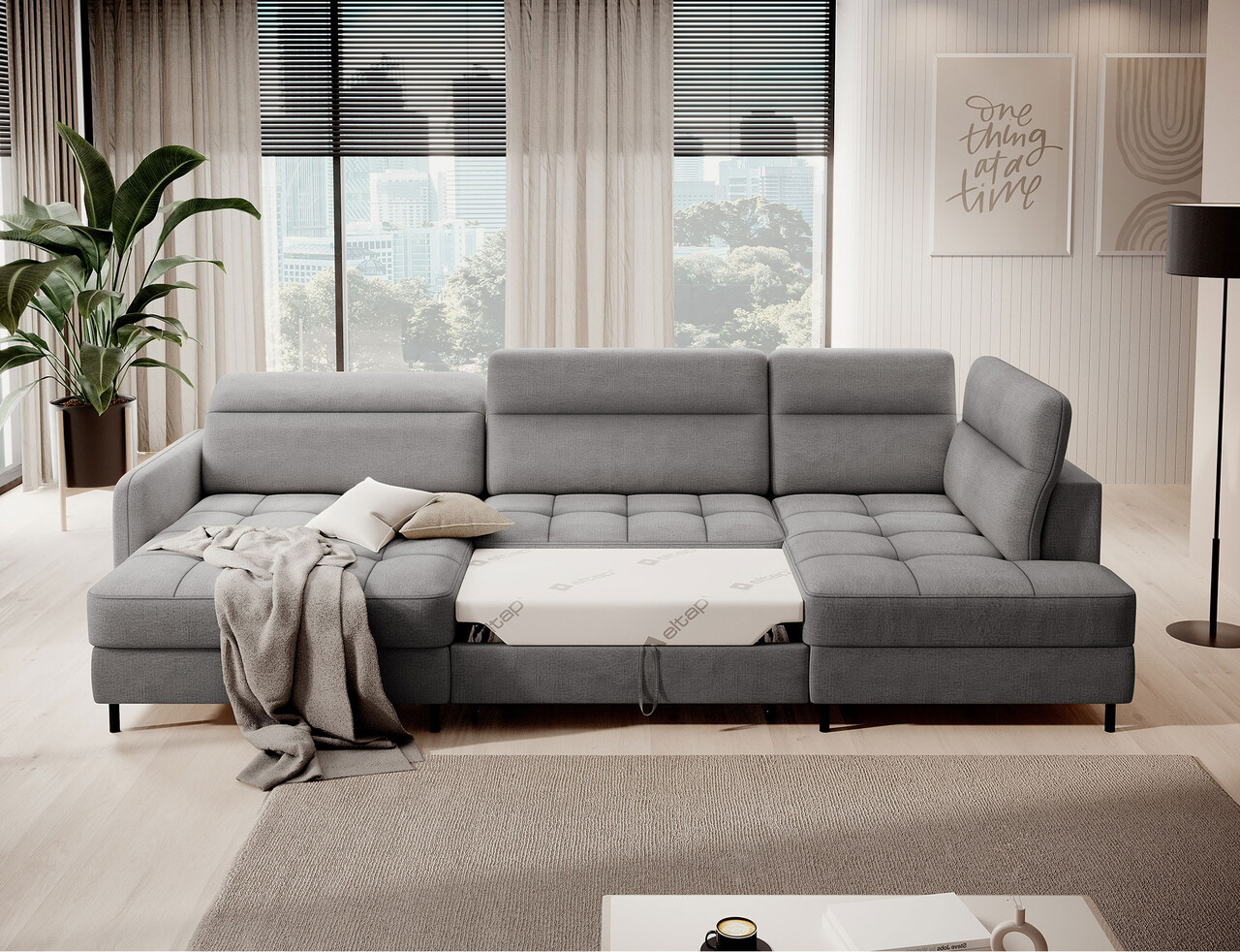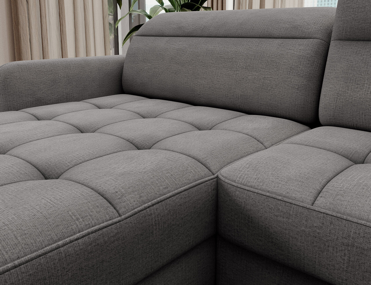 Coltar Berrto este o piesa de mobilier pentru living extrem de sofisticata, creata pentru a va oferi confort si functionalitate exceptionale. Acest coltar elegant combina designul modern cu utilizarea excelenta a componentelor de inalta calitate. Este fabricat folosind arcuri cu valuri de tip B care, impreuna cu spuma HR + T2130, extrem de elastica, creeaza o suprafata a sezutului cu un confort de neegalat. Acest lucru face sezutul moale, flexibil si se adapteaza perfect formei corpului, oferind nu numai relaxare, ci si usurare pentru muschi. Utilizarea curelelor de tapiterie si a spumei T2130 garanteaza durabilitatea si rezistenta la deformare. Nu trebuie sa va faceti griji cu privire la cutele inestetice deoarece acest coltar isi va pastra aspectul original pentru multi ani. Il puteti transforma rapid si usor intr-un pat confortabil, asigurandu-va dumneavoastra si oaspetilor dumneavoastra un somn bun. Coltarul Berrto nu inseamna doar confort, ci si fiabilitate. Durabilitatea sa este impresionanta, atingand o capacitate maxima de 390 kg. Aceasta inseamna ca va puteti bucura de el multi ani fara sa va faceti griji cu privire la durabilitatea acestuia. Coltarul Berrto se distinge nu numai prin functionalitatea sa, ci si prin finisajul sau estetic. Picioarele din otel negru ii confera o senzatie moderna, iar designul elegant il face un element minunat al decorului camerei de zi. Este echipat cu un mecanism de extindere de tip Delfin, usor de utilizat, care va permite sa il transformati rapid intr-un pat confortabil. Este solutia perfecta atunci cand aveti nevoie de un loc de dormit pentru oaspeti. Coltarul Berrto este o piesa de mobilier care imbina luxul, confortul si functionalitatea. Manopera sa de inalta calitate si finisajul atent il vor face nu numai punctul de atractie al camerei de zi, ci si un loc unde sa va relaxati si sa petreceti timp cu prietenii si familia.Compozitie materialMaterial tapiterie: 100% poliester (tesatura primara Toscany 03).Material cadru: lemn de pinUmplutura sezut: spuma HR+T2130Umplutura spatar: spuma-T2130Picioare din otel de culoare neagra.Informatii suplimentareInaltime sezut: 45 cmAdancime sezut: 64 cmInaltime picioare: 10 cmSuprafata de dormit: 130×300 cmDimensiuni lada depozitare: 116x97x15 cmMecanism extindere tip delfin.Greutatea maxima suportata: 390 kgProdusul necesita asamblare, asamblat partial.