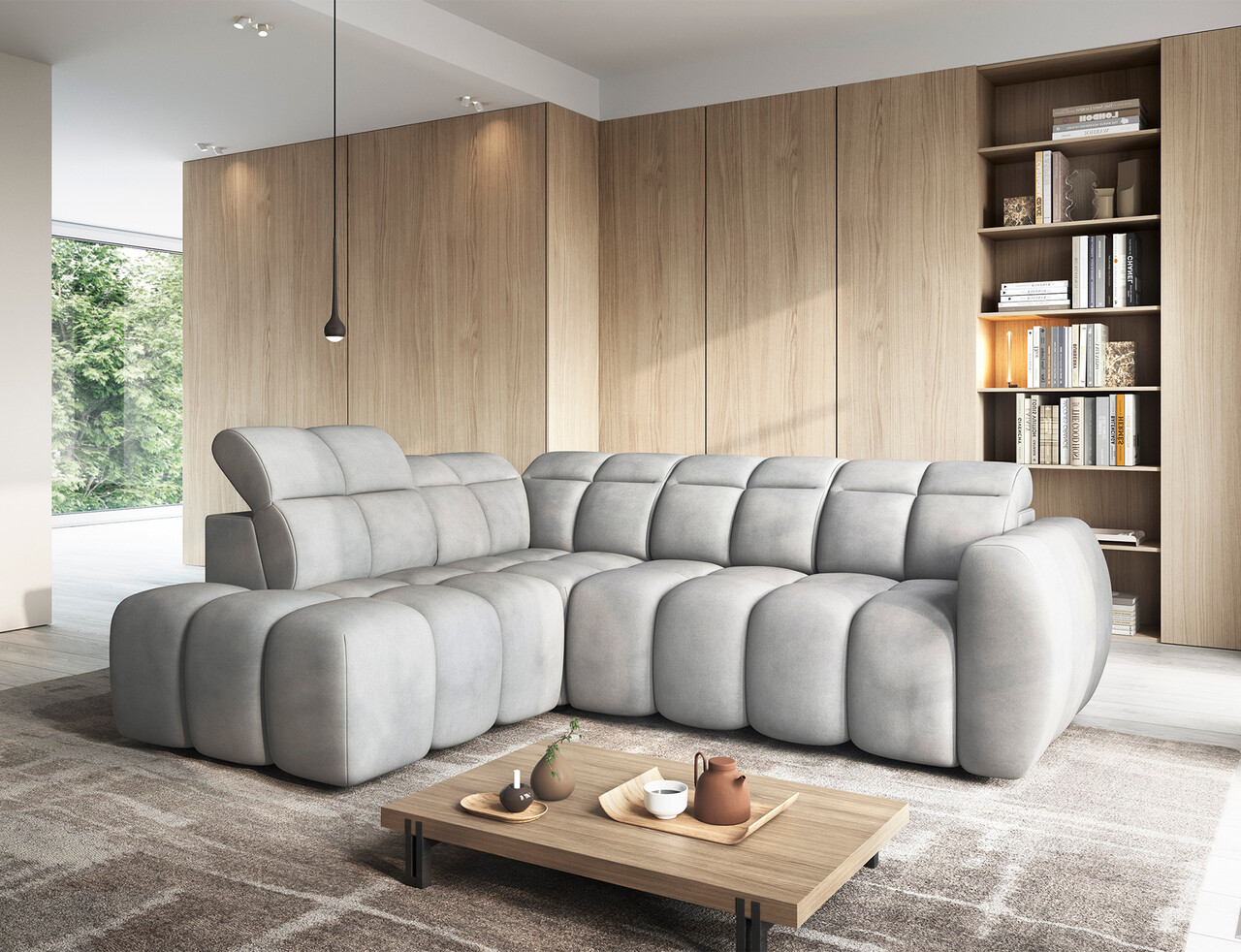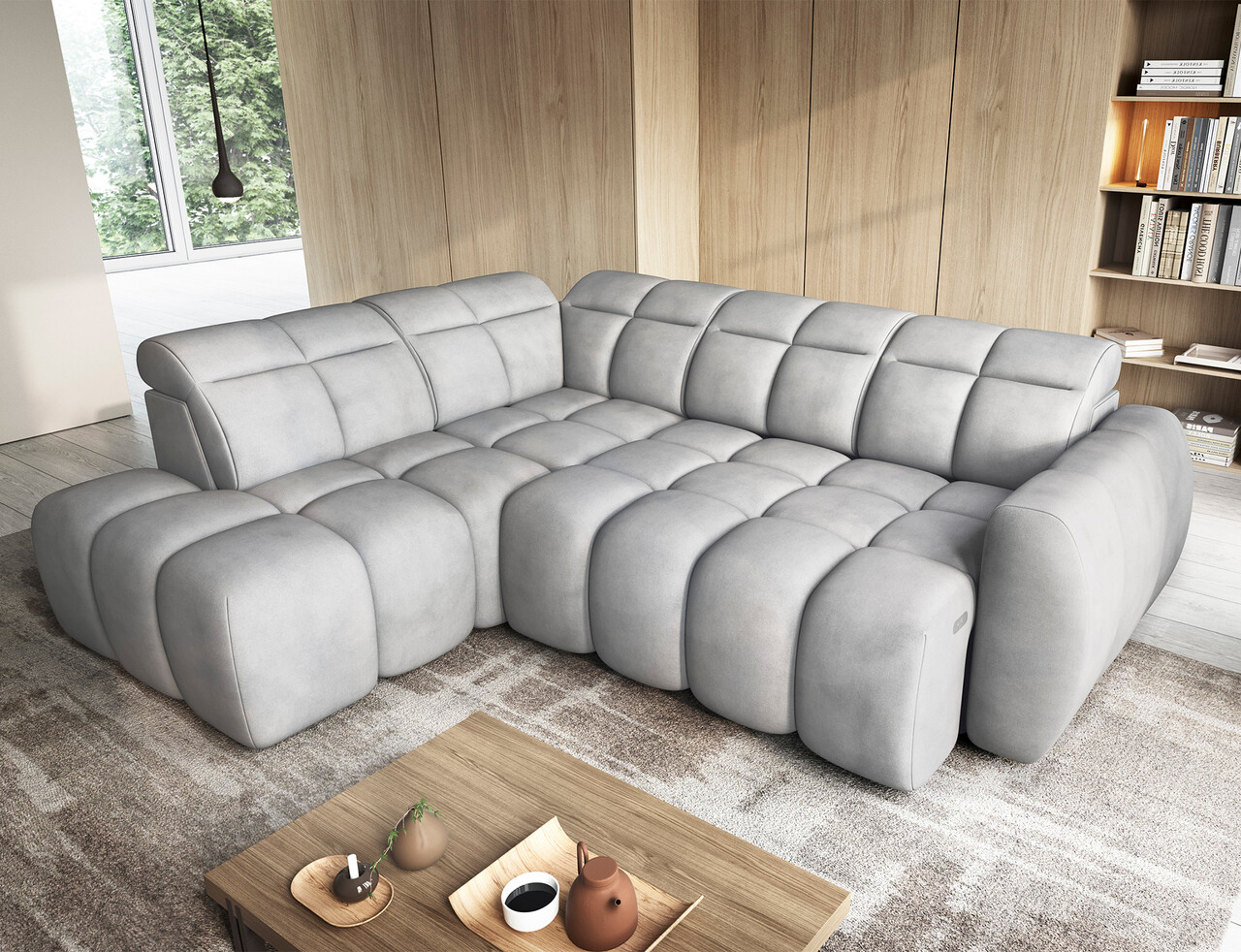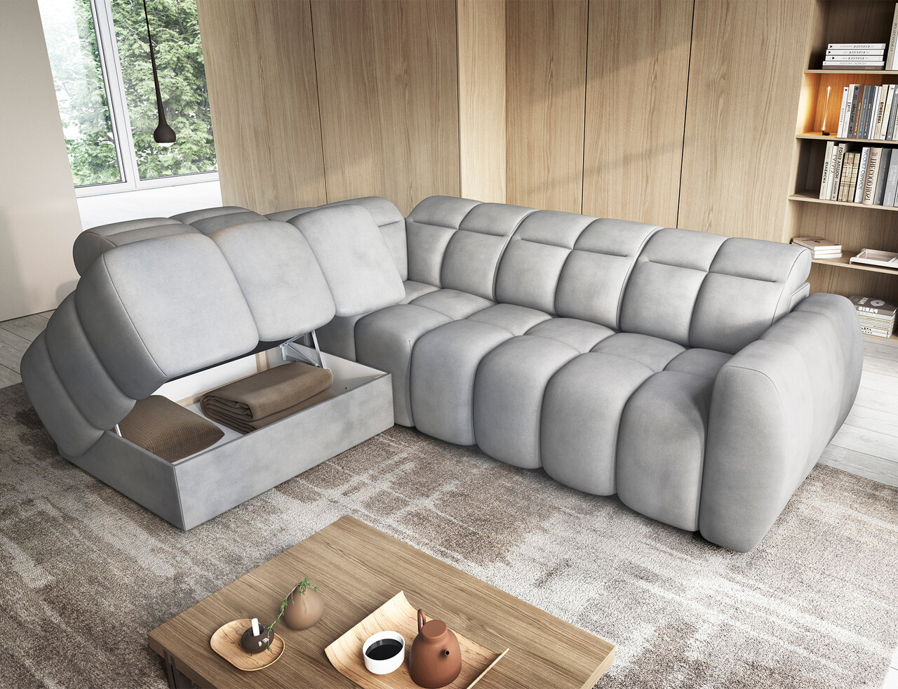 Coltarul Falconn este o piesa de mobilier eleganta si moderna in forma de L care combina un design stilat cu un confort exceptional. Datorita sezutului extensibil electric, permite ajustarea flexibila a spatiului pentru a satisface nevoile individuale. In plus, compartimentul de depozitare integrat ofera un loc practic pentru lenjeria de pat. Confortul ridicat este asigurat de tetiera reglabila si materialele de umplutura atent selectionate. Sezutul este alcatuit din arcuri ondulate tip B si spuma poliuretanica HR3030, garantand flexibilitate si durabilitate. Spatarul este realizat din benzi elastice si spuma poliuretanica T2315, oferind un suport excelent pentru zona lombara. Spatarul complet tapitat permite canapelei sa arate bine din orice unghi, facand-o potrivita pentru diverse aranjamente interioare. Picioarele din plastic negru adauga o nota de modernitate designului. Coltarul Falconn este alegerea ideala pentru cei care apreciaza functionalitatea, designul contemporan si un confort suprem.Compozitie materialMaterial tapiterie: 100% poliester (tesatura primara Sola 04).Material cadru: lemn de pinPicioare din plastic de culoare neagra.Umplutura spatar: spuma poliuretanica T2315, benzi elasticeUmplutura sezut: arc ondulat tip B, spuma poliuretanica HR3030 Informatii suplimentareInaltime sezut: 45 cmAdancime sezut: 58 cmInaltime picioare: 2.5 cmMecanism extindere: extensie electrica a sezutuluiSuprafata de dormit: 132×187 cmDimensiuni lada depozitare: 80x77x18 cmGreutatea maxima suportata: 280 kgProdusul necesita asamblare, asamblat partial.