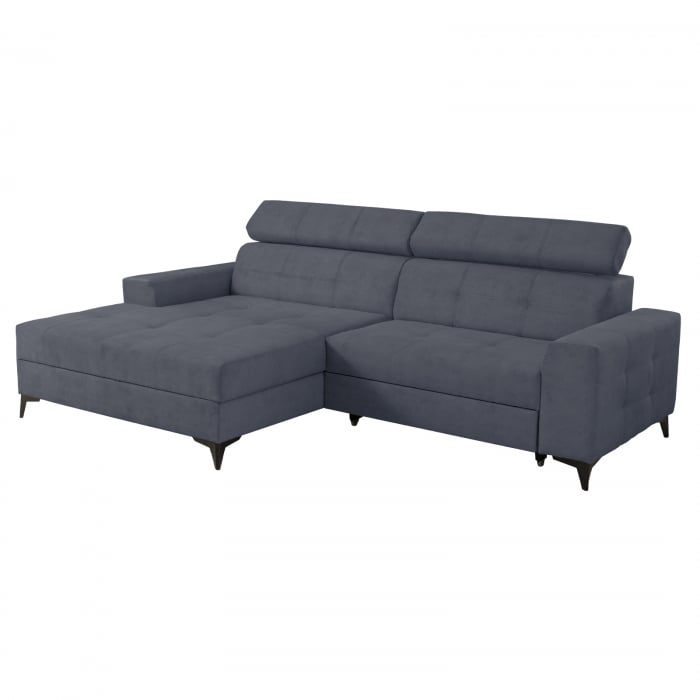 Coltar FLORIDA ONE extensibil, cu arcuri si lada depozitare, colt stanga, albastru petrol, 280x175x95 cm
