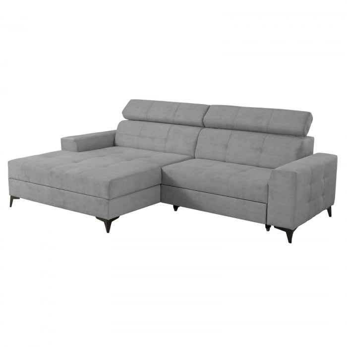 Coltar FLORIDA ONE extensibil, cu arcuri si lada depozitare, colt stanga, gri deschis, 280x175x95 cm