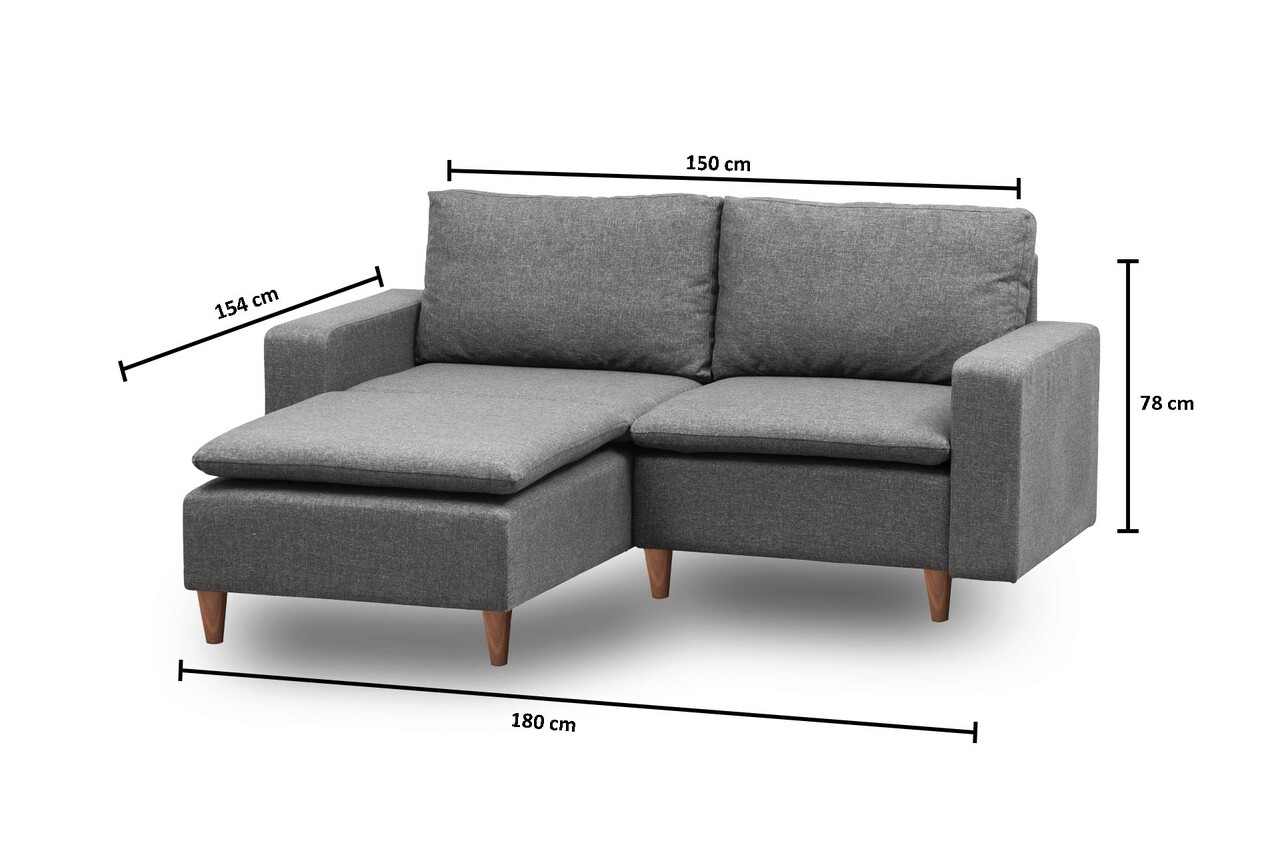 Tesatura: PoliesterAdâncimea scaunului: 52 cmLățimea scaunului: 150 cmInaltime sezut: 46 cmDimensiunea patului: 150 x 52 cmLungimea șezlongului: 154 cmDimensiunea patului Chaise Lounge: 75 x 154 cmLatime totala (Cu bratele): 180 cm Spumă DNS înaltă acoperită cu structură interioară din fibrePerne pentru spate din fibra de siliconExtensibil