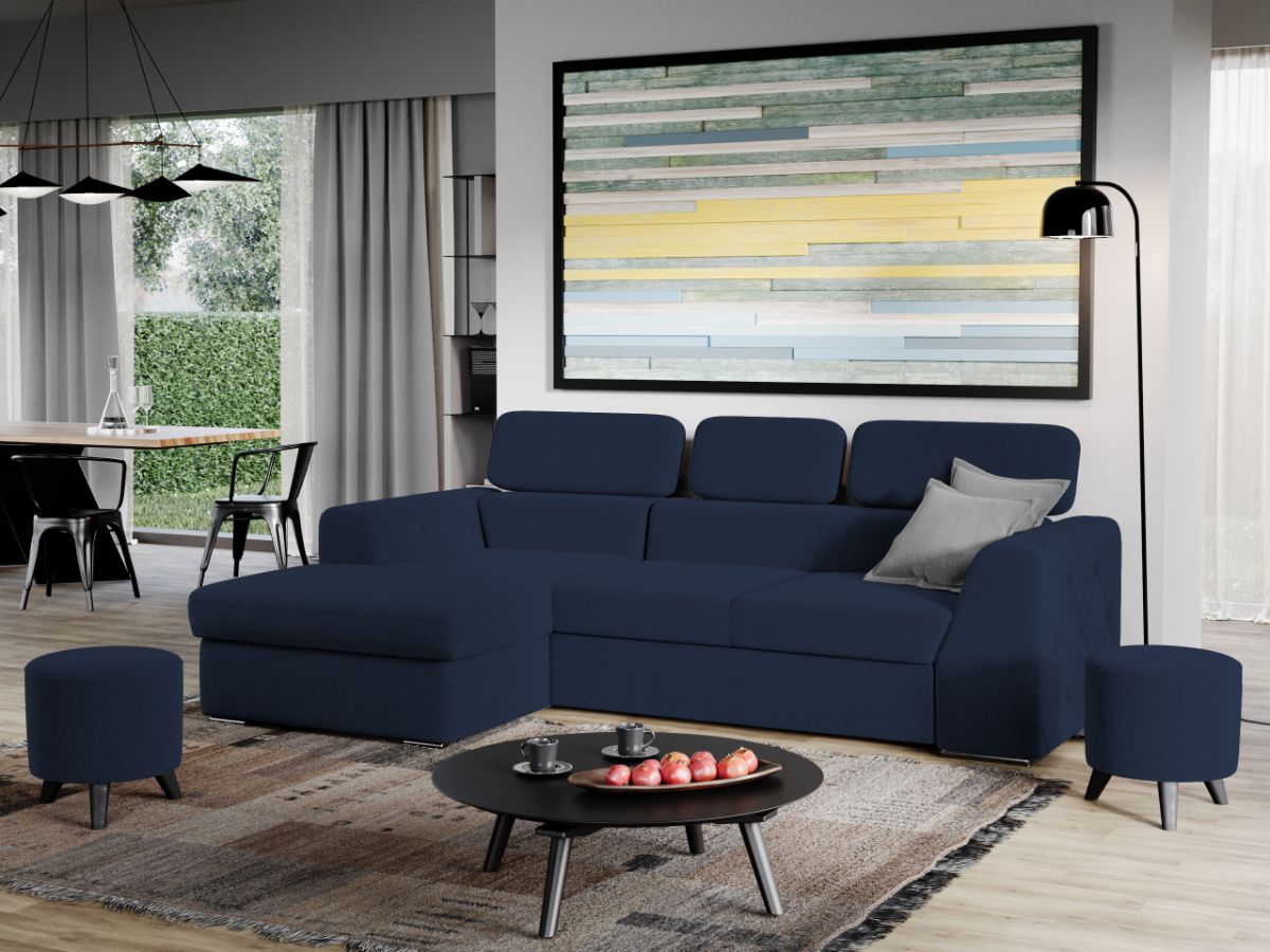 Coltar Grace Albastru Stim cat de important este sa alegi piesa centrala a sufrageriei, asa ca am gandit acest coltar bifand trei elemente esentiale: confort, utilitate si aspect. Coltar Grace Albastru prezinta trei tetiere reglabile si lada pentru depozitare pozitionata sub sezlong, care poate fi accesata prin ridicarea partii superioare a acestuia. Imbina cu succes functionalitatea cu designul, transformandu-se rapid intr-un pat confortabil de 200 x 130 cm . Butonii de pe brate dau un plus de eleganta si stil oricarui living. Este potrivit pentru un living cu dimensiuni generoase, avand dimensiunea de: 260 cm lungime, 165 cm latime, 94 cm inaltime totala . Este tapitat cu stofa de calitate pe diverse culori. Atentie: Pretul afisat nu include alte accesorii sau obiecte de decor. Taburetele, pernele deco si draperiile se pot achizitiona optional. Livrare gratuita si rapida, 4-10 zile lucratoare prin flota proprie Suntem producatori de tapiterii, fara intermediari Toate piesele de tapiterii au o garantie de 2 ani Sezutul si extensia coltarului sunt din poliuretan High Resilience . Scheletul este rezistent, realizat pe structura solida de fag si pal. Extensia de tip sertar este pozitionata sub sezutul coltarului. Se deschide ca un sertar, apoi se ridica salteaua din interiorul acestuia. Coltar Grace Albastru se incadreaza cu usurinta in majoritatea locuintelor indiferent de stilul acestora. Puteti alege din mai multe culori pentru stofa. Produsele disponibile le puteti vedea aici Modele Grace . Dimensiuni Coltar Grace Lungime: 260 cm Latime: 165 cm Lungime intre brate: 200 cm Inaltime sezut: 45 cm Inaltime: 94 cm Adancime sezut: 63 cm Adancime selon 130 cm Latime sezlon 100 cm Inaltime brate: 60 cm Lungime brate: 96 cm Inaltime spatar cu tetiere inchise: 72 cm Inaltime spatar cu tetiere ridicate: 94 cm Dimensiuni extinsa Lungime extinsa: 200 cm Adancime extinsa: 130 cm Tapiterie Coltar Grace Albastru Tapiteria produsului este din stofa Albastra. Nuanta acestui produs nu este pretentioasa, mascheaza eventualele evenimente neplacute prin care se poate murdari sau pata si se integreaza perfect in majoritatea locuintelor. Intretinere: se recomanda ca praful sa se stearga cu un material textil moale (finet) umed si sa nu se curete cu agenti chimici (diluant, acetona). Imaginile sunt cu titlu de prezentare si pot avea mici diferente de nuante in functie de display. Dimensiunile sunt exprimate în centimetri și pot oscila între ± 50 mm.