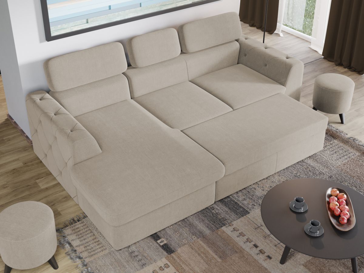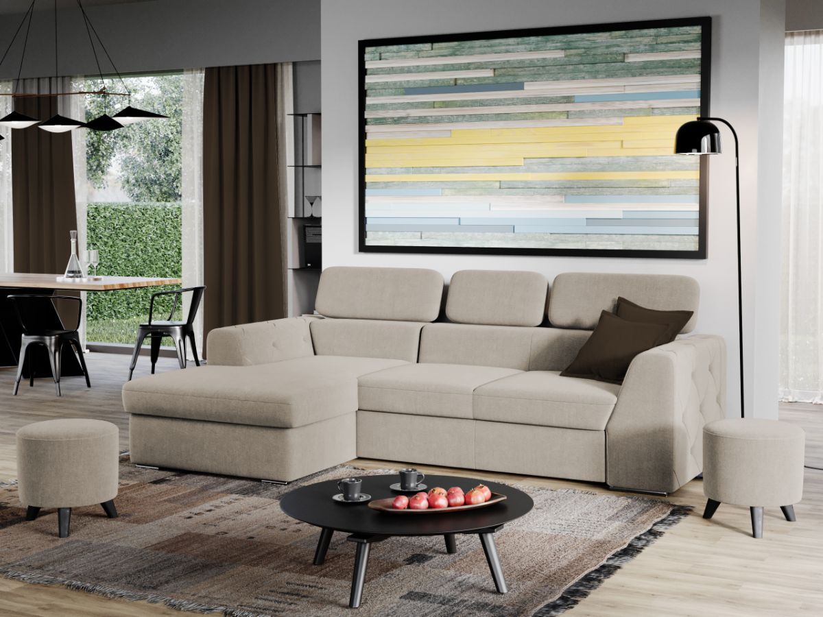 Coltar Grace Crem Stim cat de important este sa alegi piesa centrala a sufrageriei, asa ca am gandit acest coltar bifand trei elemente esentiale: confort, utilitate si aspect. Coltar Grace Crem prezinta trei tetiere reglabile si lada pentru depozitare pozitionata sub sezlong, care poate fi accesata prin ridicarea partii superioare a acestuia. Imbina cu succes functionalitatea cu designul, transformandu-se rapid intr-un pat confortabil de 200 x 130 cm . Butonii de pe brate dau un plus de eleganta si stil oricarui living. Este potrivit pentru un living cu dimensiuni generoase, avand dimensiunea de: 260 cm lungime, 165 cm latime, 94 cm inaltime totala . Este tapitat cu stofa de calitate pe diverse culori. Atentie: Pretul afisat nu include alte accesorii sau obiecte de decor. Taburetele, pernele deco si draperiile se pot achizitiona optional. Livrare gratuita si rapida, 4-10 zile lucratoare prin flota proprie Suntem producatori de tapiterii, fara intermediari Toate piesele de tapiterii au o garantie de 2 ani Sezutul si extensia coltarului sunt din poliuretan High Resilience . Scheletul este rezistent, realizat pe structura solida de fag si pal. Extensia de tip sertar este pozitionata sub sezutul coltarului. Se deschide ca un sertar, apoi se ridica salteaua din interiorul acestuia. Coltar Grace Crem se incadreaza cu usurinta in majoritatea locuintelor indiferent de stilul acestora. Puteti alege din mai multe culori pentru stofa. Produsele disponibile le puteti vedea aici Modele Grace . Dimensiuni Coltar Grace Lungime: 260 cm Latime: 165 cm Lungime intre brate: 200 cm Inaltime sezut: 45 cm Inaltime: 94 cm Adancime sezut: 63 cm Adancime selon 130 cm Latime sezlon 100 cm Inaltime brate: 60 cm Lungime brate: 96 cm Inaltime spatar cu tetiere inchise: 72 cm Inaltime spatar cu tetiere ridicate: 94 cm Dimensiuni extinsa Lungime extinsa: 200 cm Adancime extinsa: 130 cm Tapiterie Coltar Grace Crem Tapiteria produsului este din stofa Crem. Nuanta acestui produs nu este pretentioasa, mascheaza eventualele evenimente neplacute prin care se poate murdari sau pata si se integreaza perfect in majoritatea locuintelor. Intretinere: se recomanda ca praful sa se stearga cu un material textil moale (finet) umed si sa nu se curete cu agenti chimici (diluant, acetona). Imaginile sunt cu titlu de prezentare si pot avea mici diferente de nuante in functie de display. Dimensiunile sunt exprimate în centimetri și pot oscila între ± 50 mm.