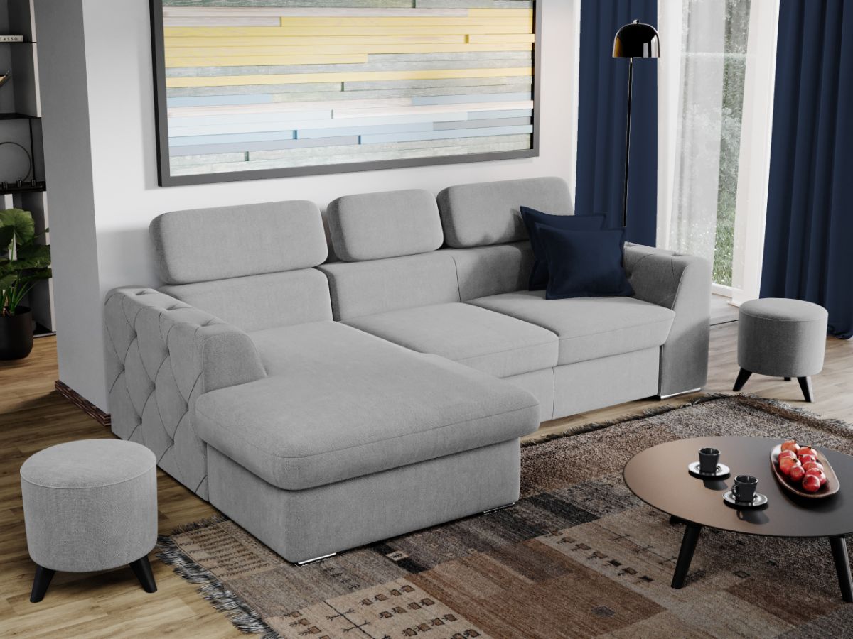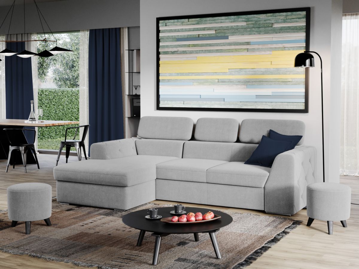 Coltar Grace Gri Deschis Stim cat de important este sa alegi piesa centrala a sufrageriei, asa ca am gandit acest coltar bifand trei elemente esentiale: confort, utilitate si aspect. Coltar Grace Gri Deschis prezinta trei tetiere reglabile si lada pentru depozitare pozitionata sub sezlong, care poate fi accesata prin ridicarea partii superioare a acestuia. Imbina cu succes functionalitatea cu designul, transformandu-se rapid intr-un pat confortabil de 200 x 130 cm . Butonii de pe brate dau un plus de eleganta si stil oricarui living. Este potrivit pentru un living cu dimensiuni generoase, avand dimensiunea de: 260 cm lungime, 165 cm latime, 94 cm inaltime totala . Este tapitat cu stofa de calitate pe diverse culori. Atentie: Pretul afisat nu include alte accesorii sau obiecte de decor. Taburetele, pernele deco si draperiile se pot achizitiona optional. Livrare gratuita si rapida, 4-10 zile lucratoare prin flota proprie Suntem producatori de tapiterii, fara intermediari Toate piesele de tapiterii au o garantie de 2 ani Sezutul si extensia coltarului sunt din poliuretan High Resilience . Scheletul este rezistent, realizat pe structura solida de fag si pal. Extensia de tip sertar este pozitionata sub sezutul coltarului. Se deschide ca un sertar, apoi se ridica salteaua din interiorul acestuia. Coltar Grace Gri Deschis se incadreaza cu usurinta in majoritatea locuintelor indiferent de stilul acestora. Puteti alege din mai multe culori pentru stofa. Produsele disponibile le puteti vedea aici Modele Grace . Dimensiuni Coltar Grace Lungime: 260 cm Latime: 165 cm Lungime intre brate: 200 cm Inaltime sezut: 45 cm Inaltime: 94 cm Adancime sezut: 63 cm Adancime selon 130 cm Latime sezlon 100 cm Inaltime brate: 60 cm Lungime brate: 96 cm Inaltime spatar cu tetiere inchise: 72 cm Inaltime spatar cu tetiere ridicate: 94 cm Dimensiuni extinsa Lungime extinsa: 200 cm Adancime extinsa: 130 cm Tapiterie Coltar Grace Gri Deschis Tapiteria produsului este din stofa Gri Deschis. Nuanta acestui produs nu este pretentioasa, mascheaza eventualele evenimente neplacute prin care se poate murdari sau pata si se integreaza perfect in majoritatea locuintelor. Intretinere: se recomanda ca praful sa se stearga cu un material textil moale (finet) umed si sa nu se curete cu agenti chimici (diluant, acetona). Imaginile sunt cu titlu de prezentare si pot avea mici diferente de nuante in functie de display. Dimensiunile sunt exprimate în centimetri și pot oscila între ± 50 mm.