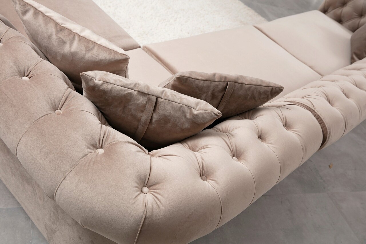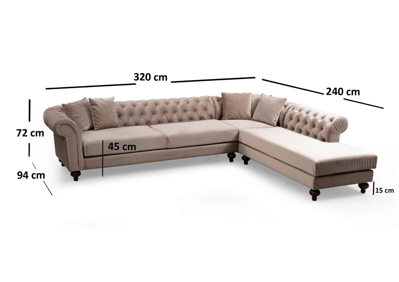 Tesatura: PoliesterLatime: 320 cm Inaltime: 72 cm Adancime: 240 cmSpuma: 8 cm 28 DNS Soft Gray Foam + 8 cm 24 DNS Feather, Pentru ȘezutSpuma 24 DNS spatarDetaliu: 4 perne incluse60% spuma taiata / 40% spuma siliconicaMarime: 45 cm x 45 cmPernă de șezut portabilă și pernă de spate fixăȚesătură care se curăță uscatPicioare: Picioare din lemn negruNu este extensibil