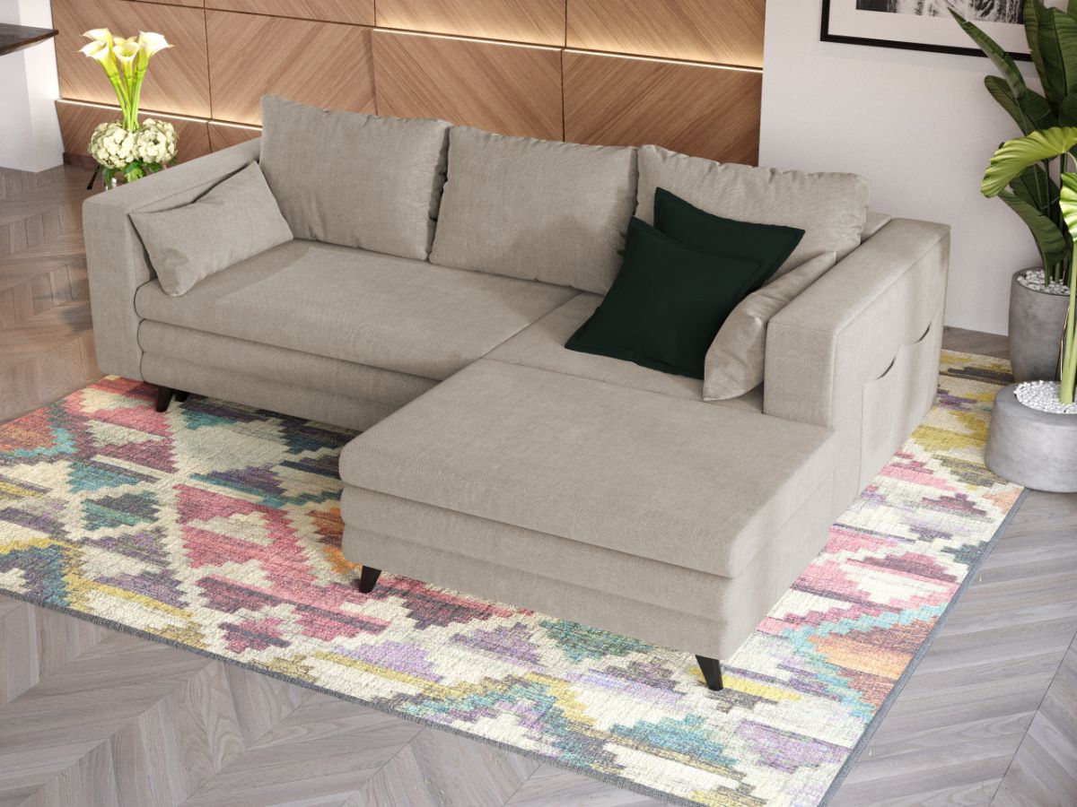Coltar Leto Crem Coltar Leto Crem este un model de coltar cu un design aparte si un rafinament desavarsit. Ofera un confort sporit dat de pernele detasabile mari si mici, cat si utilitate prin posibilitatea de extindere si prin lada de depozitare . Are dimensiunea de: 250 cm lungime, 180 cm latime, 95 cm inaltime totala . Pe bratele coltarului sunt pozitionate cate doua buzunare , care pot fi de un real ajutor pentru obiecte ca telecomanda, telefon, carti, ochelari sau alte lucruri ce doriti sa fie mereu in apropiere. Dupa extindere, obtineti un spatiu pentru odihna si relaxare, cu suprafata utila 213 x 130 cm . Picioarele negre si aspectul rotunjit al fetei de lada si al sezutului dau un aspect elegant si impunator in orice locuinta. Este tapitat cu o stofa premium uni pe diverse culori. Atentie: Pretul afisat nu include alte accesorii sau obiecte de decor (pernele deco, tablouri, elemente de iluminat, covor etc.). Taburetele se pot achizitiona optional. Livrare gratuita si rapida, 4-10 zile lucratoare prin flota proprie Suntem producatori de tapiterii, fara intermediari Toate piesele de tapiterii au o garantie de 2 ani Sezutul si extensia coltarului sunt pe relaxa (arcuri elicoidale și poliuretan) . Scheletul este rezistent, realizat pe structura solida de fag si pal. Extensia este de tip Doppelliege, ce prezinta un sistem actionat prin role, astfel ca partea de sezut se trage si permite partii de spatar sa gliseze spre partea din fata si sa se pozitioneze orizontal. Coltar Leto Crem se incadreaza cu usurinta in majoritatea locuintelor indiferent de stilul acestora. Puteti alege din mai multe culori pentru stofa. Produsele disponibile le puteti vedea aici Modele Leto . Dimensiuni Coltar Leto Crem Lungime: 250 cm Latime: 180 cm Inaltime sezut cu picioare: 49 cm Inaltime sezut fara picioare: 38 cm Inaltime : 95 cm Adancime sezut cu perne: 62 cm Adancime sezut fara perne: 88 cm Adancime sezlon 130 cm Dimensiuni extins Lungime extins: 213 cm Adancime extins: 130 cm Dimensiuni brate Inaltime brate: 70 cm Latime brate: 17 cm Tapiterie Coltar Leto Crem Tapiteria produsului este din stofa Crem . Nuanta acestui produs nu este pretentioasa, mascheaza eventualele evenimente neplacute prin care se poate murdari sau pata si se integreaza perfect in majoritatea locuintelor. Intretinere: se recomanda ca praful sa se stearga cu un material textil moale (finet) umed si sa nu se curete cu agenti chimici (diluant, acetona). Imaginile sunt cu titlu de prezentare si pot avea mici diferente de nuante in functie de display. Dimensiunile sunt exprimate în centimetri și pot oscila între ± 50 mm.