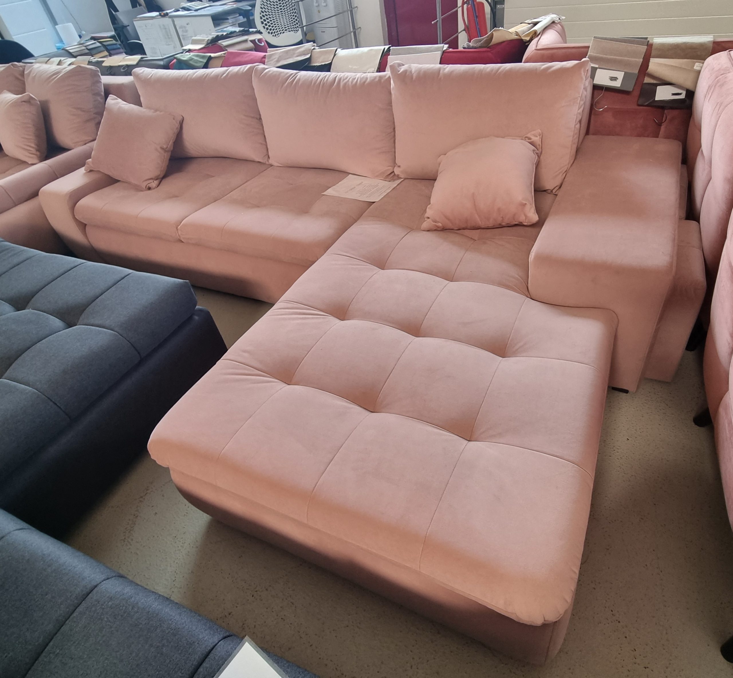 Coltarul Maty roz devine la nevoie extensibil, are lada de depozitare si este prevazut cu 2 tambureti. Salteaua este realizata din spuma poliuretanica de inalta densitate asezata pe un suport de arcuri sinusoidale. Dimensiuni 280 cm lungime x 185 cm latime x 82 cm Suprafata de dormit 135 cm x 213 cm . Material catifea,…