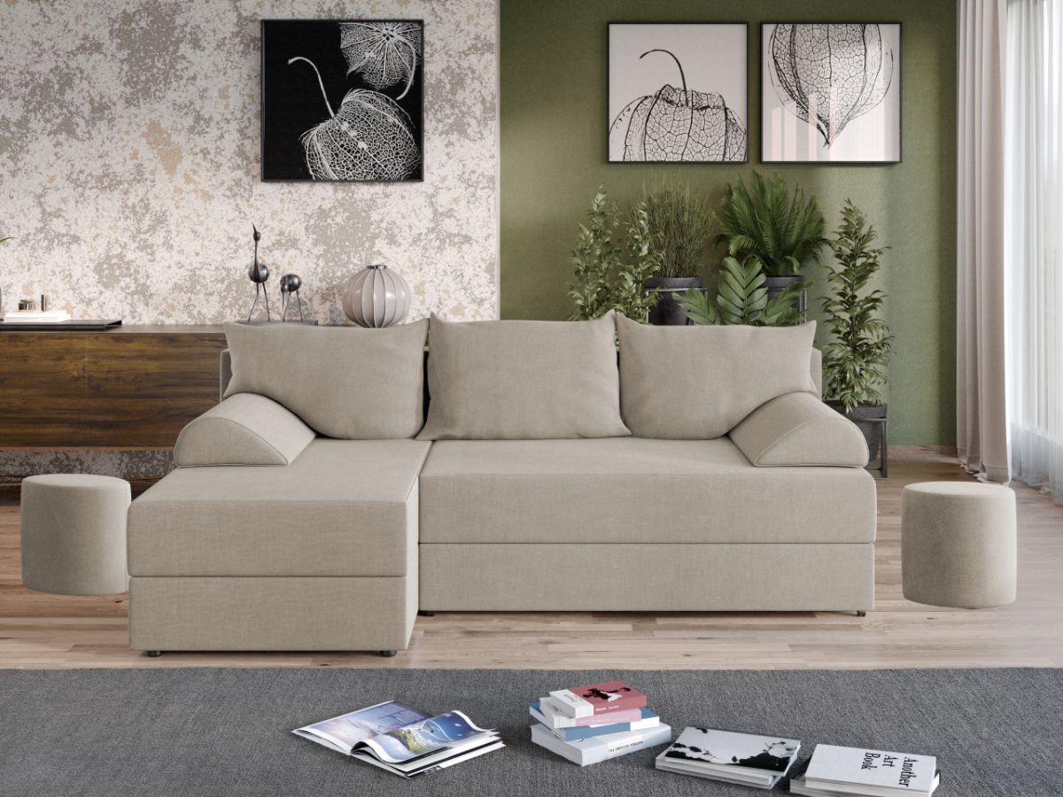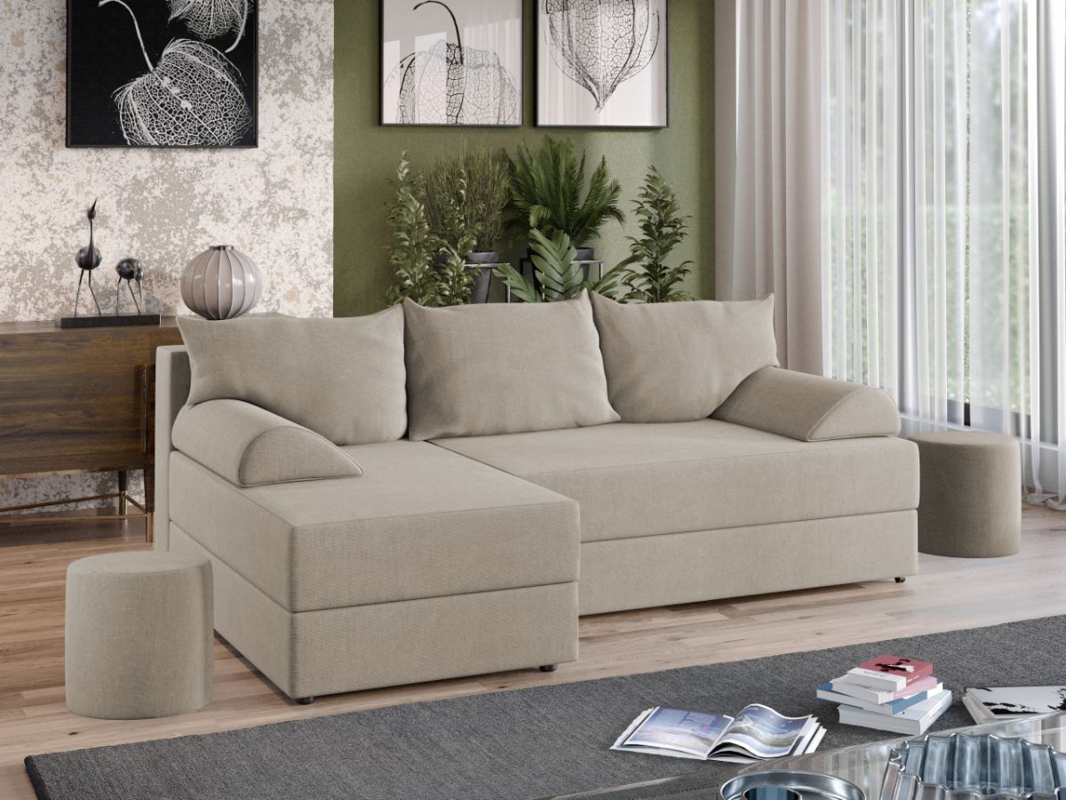Coltar Mia Crem Chic, cu un design minimalist, Coltar Mia Crem creeaza un ambient cald, primitor si este ideal pentru un hol sau living de dimensiuni medii sau mari. Coltarul se transforma rapid si usor intr-un pat spatios de 210 x 135 cm prin tragerea sezutului si rabatarea spatarului. Lada integrata este ideala pentru depozitarea lenjeriei, a pernelor sau a paturii si pentru a pastra la indemana toate articolele frecvent utilizate. Cele 3 perne si bratele detasabile ofera un confort sporit in orice moment. Acesta are dimensiunea de: 210 cm lungime, 135 cm latime, 70 cm inaltime totala . Este tapitat cu stofa de calitate pe diverse culori. Atentie: Pretul afisat nu include alte accesorii sau obiecte de decor (pernele deco, tablouri, elemente de iluminat, covor etc.). Taburetele, pernele deco si draperiile se pot achizitiona optional. Livrare gratuita si rapida, 4-10 zile lucratoare prin flota proprie Suntem producatori de tapiterii, fara intermediari Toate piesele de tapiterii au o garantie de 2 ani Sezutul si extensia coltarului sunt pe relaxa (arcuri elicoidale și poliuretan) . Scheletul este rezistent, realizat pe structura solida de fag si pal. Extensia este de tip Doppelliege, ce prezinta un sistem actionat prin role, astfel ca partea de sezut se trage si permite partii de spatar sa gliseze spre partea din fata si sa se pozitioneze orizontal. Coltar Mia Crem se incadreaza cu usurinta in majoritatea locuintelor indiferent de stilul acestora. Puteti alege din mai multe culori pentru stofa. Produsele disponibile le puteti vedea aici Modele Mia . Dimensiuni Coltar Mia Crem Lungime: 210 cm Latime: 135 cm Inaltime sezut: 40 cm Inaltime : 70 cm Adancime sezut: 80 cm Adancime sezlon 120 cm Dimensiuni extins Lungime extins: 210 cm Adancime extins: 135 cm Dimensiuni brate Inaltime brate: 15 cm Latime brate: 35 cm Lungime brate: 75 cm Tapiterie Coltar Mia Crem Tapiteria produsului este din stofa Crem . Nuanta acestui produs nu este pretentioasa, mascheaza eventualele evenimente neplacute prin care se poate murdari sau pata si se integreaza perfect in majoritatea locuintelor. Intretinere: se recomanda ca praful sa se stearga cu un material textil moale (finet) umed si sa nu se curete cu agenti chimici (diluant, acetona). Imaginile sunt cu titlu de prezentare si pot avea mici diferente de nuante in functie de display. Dimensiunile sunt exprimate în centimetri și pot oscila între ± 50 mm.
