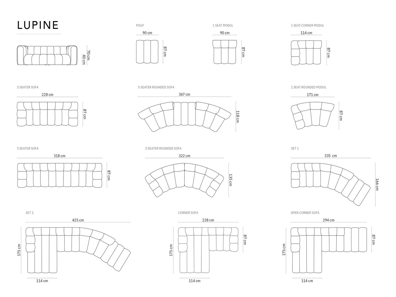 Brandul Micadoni Home este rezultatul multor ani de pasiune in domeniul designului de mobilier. Acesta se adreseaza clientilor care iubesc interioarele confortabile si moderne. Gama larga de culori si designul unic subliniaza caracterul marcii.Atmosferele diferite create de fiecare colectie vor atrage clientii care vor aprecia confortul, formele moderne si calitatea materialelor selectate. Tesatura frumoasa, luxoasa, cu o usoara stralucire si fire scurte. Materialul este gros si se incadreaza in categoria velurului (catifea). Este foarte fin si placut la atingere, de asemenea, foarte rezistent la abraziune (testul Martindale 100 000 si 440 g / m2). Tehnica LiquidBlocked folosita pe tesatura face ca aceasta sa absoarba greu lichidele – face ca lichidul sa se adune la suprafata materialului, fara a patrunde in profunzimea fibrelor. Datorita acestui fapt, cafeaua, ceaiul sau vinul care au fost turnate pe tesatura vor fi indepartate in cateva secunde prin aplicarea unei carpe usor absorbante sau a unui prosop de hartie. Tesatura a trecut cu succes testul tigarilor, ceea ce inseamna ca sistemul de tapiterie este rezistent la aprindere prin combustie si flacara si respecta standardul PN-EN 1021-1: 2014-12.Compozitie materialMaterial tapiterie: catifeaMaterial structura: cadru din lemn masiv de pin, PAL, placi din fibra, placaj, arcuri, picioare din plastic negru.Compozitie umplutura sezut: spuma poliuretanica 30 kg/mc si vata 150 g/mpCompozitie umplutura spatar: spuma poliuretanica 25 kg/mc + vata 150 g/mpUmplutura cu arcuri: daModel arcuri: ondulate si zig-zagInformatii si dimensiuni specificeLungime sezut: 310 cmAdancime sezut: 63/87 cmInaltime sezut: 40 cmInaltime spatar: 32 cmInaltime brate: 70 cmLatime brate: 24 cmGreutate maxima suportata: 450 kgProdusul nu necesita asamblare.Picioare din plastic de culoare neagra.Picioarele sunt asamblate.Inaltime picioare: 2 cmNumar picioare: 16Fabricat in Europa