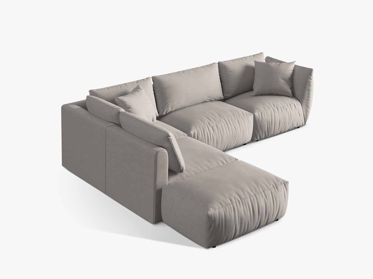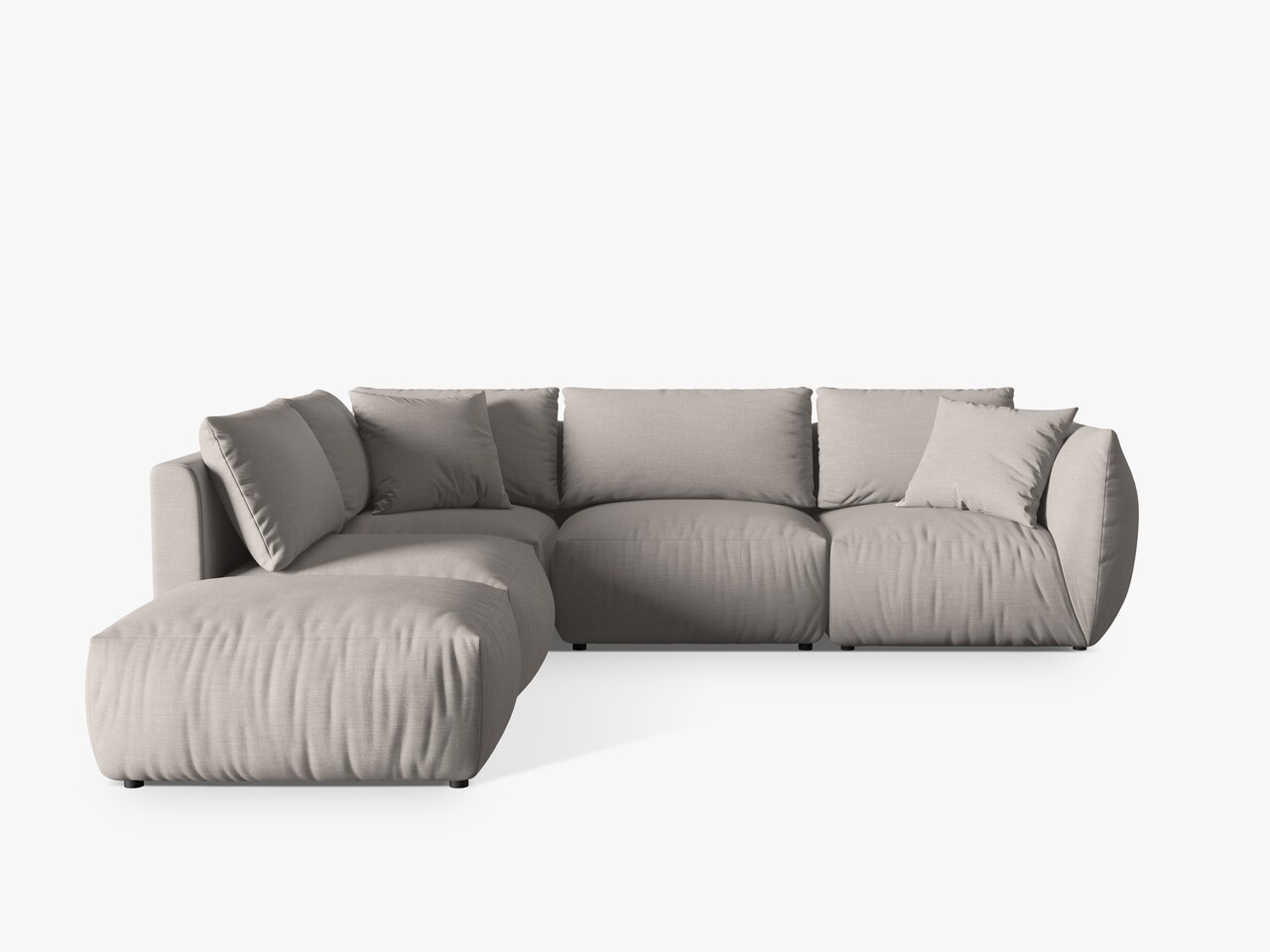 Brandul Micadoni Home este rezultatul multor ani de pasiune in domeniul designului de mobilier. Acesta se adreseaza clientilor care iubesc interioarele confortabile si moderne. Gama larga de culori si designul unic subliniaza caracterul marcii. Atmosferele diferite create de fiecare colectie vor atrage clientii care vor aprecia confortul, formele moderne si calitatea materialelor selectate.Lins este o tesatura inovatoare de tapiterie cu impletitura plata care contine in natural. Aceasta creeaza un efect de mélange distinctiv care aminteste de materialul denim. Datorita firelor fine de chenille, suprafata prezinta un model texturat foarte subtil, contribuind la finetea sa incredibila si la textura placuta.Tesatura are o constructie in doua straturi. Stratul inferior are o functie de ranforsare, iar structura sa in forma de bucla ofera un efect usor ondulat si un plus de rezistenta. O impletitura unica uneste cele doua straturi, eliminand necesitatea unui suport suplimentar.Tesatura Lins este durabila, usor de intretinut si are un aspect natural. Este o alegere excelenta pentru cei care apreciaza confortul si finisajele elegante in mobilierul lor.Compozitie materialMaterial tapiterie: tesatura structurata tip LinsTesatura rezistenta la uzura si frecari repetate: 60.000 de cicluri de frecare conform testului Martindale.Material structura: cadru din lemn masiv de pin, PAL, placi din fibre, placaj, arcuri, picioare din plastic negru.Compozitie umplutura spatar: spuma poliuretanica 30 kg/mc + spuma crisp + mix de siliconCompozitie umplutura sezut: spuma poliuretanica 30 kg/mc + spuma poliuretanica de inalta rezistenta 35 kg/mc + vata 600 g/mpUmplutura cu arcuri: daInformatii si dimensiuni specificeLungime sezut: 249 cmInaltime sezut: 43 cmAdancime sezut: 62 cmInaltime spatar: 37 cm Inaltime brate: 33 cmLatime brate: 70 cmLatime sezut meridian: 62 cmAdancime sezut meridian: 277 cmGreutate maxima suportata: 450 kgInaltime picioare: 5 cmPicioare din plastic de culoare neagra.Include 2 perne decorative 45×45 cm.Fabricat in Europa