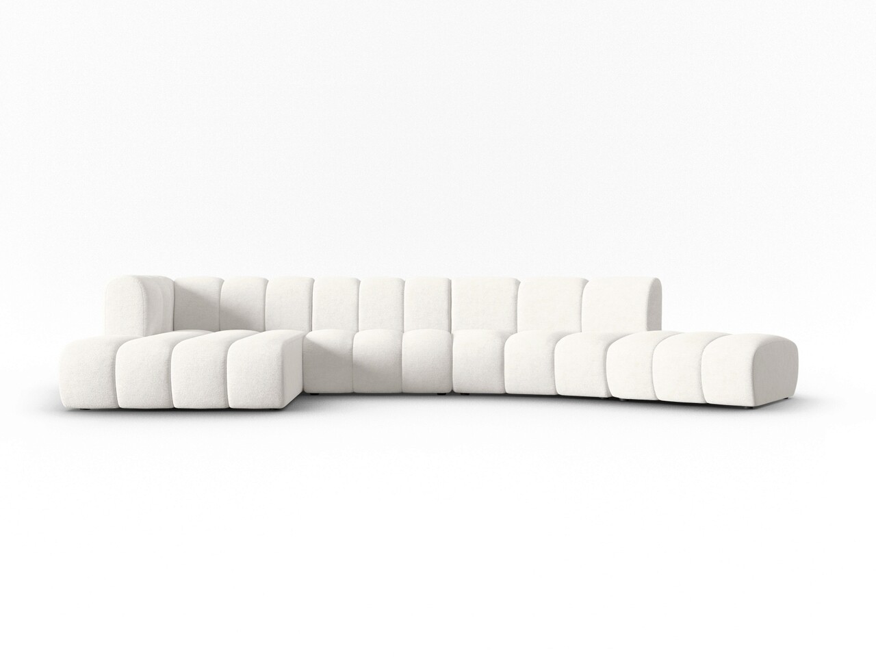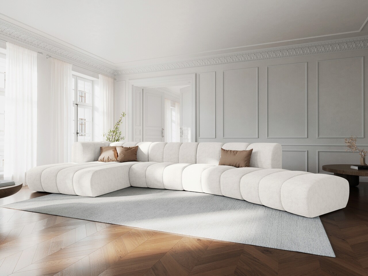 Brandul Micadoni Home este rezultatul multor ani de pasiune in domeniul designului de mobilier. Acesta se adreseaza clientilor care iubesc interioarele confortabile si moderne. Gama larga de culori si designul unic subliniaza caracterul marcii.Atmosferele diferite create de fiecare colectie vor atrage clientii care vor aprecia confortul, formele moderne si calitatea materialelor selectate. Tesatura buclata, groasa, cu o structura stransa si rasucita, care creeaza un aspect multidimensional. Nivelul foarte ridicat de rezistenta la abraziune (testul Martindale 80.000, 620 g / mp) va garanta o utilizare pe termen lung, fara semne de uzura. Fabricat in proportie de 95% din poliester si 5% din acrilic. Tesatura este certificata Oeko-Tex, ceea ce inseamna ca este complet lipsita de substante chimice daunatoare si sigura pentru uz uman. Pentru a obtine certificarea Oeko-Tex Standard 100, tesatura trebuie sa fie testata si certificata ca fiind lipsita de nivelurile nocive a peste 100 de substante cunoscute ca fiind daunatoare pentru sanatatea umana. Tesatura a trecut testul tigarilor, ceea ce inseamna ca sistemul de tapiterie este rezistent la aprindere prin combustie si aprindere cu flacara si respecta standardul PN-EN 1021-1: 2014-12.Compozitie materialMaterial tapiterie: tesatura ChenilleMaterial structura: cadru din lemn masiv de pin, PAL, placi din fibra, placaj, arcuri, picioare din plastic negru.Compozitie umplutura sezut: spuma poliuretanica 30 kg/mc si vata 150 g/mpCompozitie umplutura spatar: spuma poliuretanica 25 kg/mc + vata 150 g/mpUmplutura cu arcuri: daModel arcuri: ondulate si zig-zagInformatii si dimensiuni specificeLungime sezut: 310 cmAdancime sezut: 63/87 cmInaltime sezut: 40 cmInaltime spatar: 32 cmInaltime brate: 70 cmLatime brate: 24 cmGreutate maxima suportata: 450 kgProdusul nu necesita asamblare.Picioare din plastic de culoare neagra.Picioarele sunt asamblate.Inaltime picioare: 2 cmNumar picioare: 16Fabricat in Europa