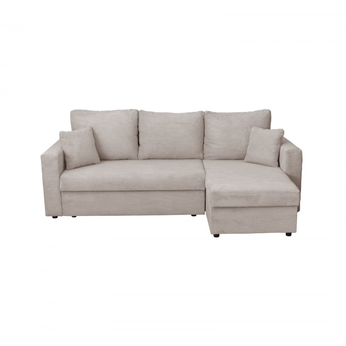 Suprafata de dormit: Lungime: 195 cm Latime: 140 cm Dimensiuni coltar (gabarit): Lungime: 225 cm Adancime: 145 cm Inaltime totala: 82 cm Inaltime sezut: 43 cm Materiale: Lemn masiv Stofa Vatelina Spuma…