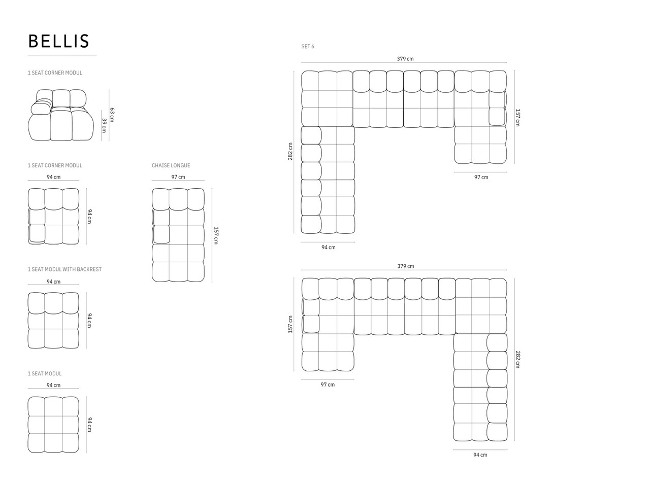 Coltar panoramic dreapta 7 locuri design modular, Bellis, Micadoni Home, BL, 379x282x63 cm, catifea, bej deschis
