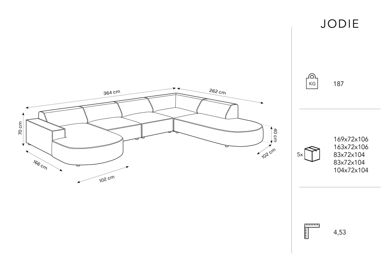 Brandul Micadoni Home este rezultatul multor ani de pasiune in domeniul designului de mobilier. Acesta se adreseaza clientilor care iubesc interioarele confortabile si moderne. Gama larga de culori si designul unic subliniaza caracterul marcii.Atmosferele diferite create de fiecare colectie vor atrage clientii care vor aprecia confortul, formele moderne si calitatea materialelor selectate. Tapiterie din tesatura sintetica care imita catifeaua cu o stralucire delicata. O alegere perfecta pentru designul elegant al mobilierului. Are o rezistenta foarte buna la abraziune, ceea ce reduce semnificativ riscul de deteriorare (Test Martindale 50000, 320 g/m2). Materialul este extrem de moale, matasos la atingere. Tesatura a trecut testul tigarilor, ceea ce inseamna ca materialul este rezistent la aprindere prin combustie si flacara si respecta standardul PN-EN 1021-1: 2014-12.Compozitie materialMaterial tapiterie: catifea sinteticaMaterial structura: cadru din lemn masiv de pin, PAL, placi din fibra, placaj, arcuri, picioare din plastic negru.Compozitie umplutura sezut: spuma poliuretanica 30 kg/mc si vata 200 g/mpCompozitie umplutura spatar: spuma poliuretanica 25 kg/mc + vata 200 g/mpUmplutura cu arcuri: daInformatii si dimensiuni specificeLungime sezut: 160 cmAdancime sezut: 62 cmInaltime sezut: 40 cmInaltime spatar: 33 cmInaltime brate: 54 cmLatime brate: 22 cmGreutate maxima suportata: 650 kgProdusul nu necesita asamblare.Picioare din plastic de culoare neagra.Picioarele sunt asamblate.Inaltime picioare: 3 cmFabricat in Europa