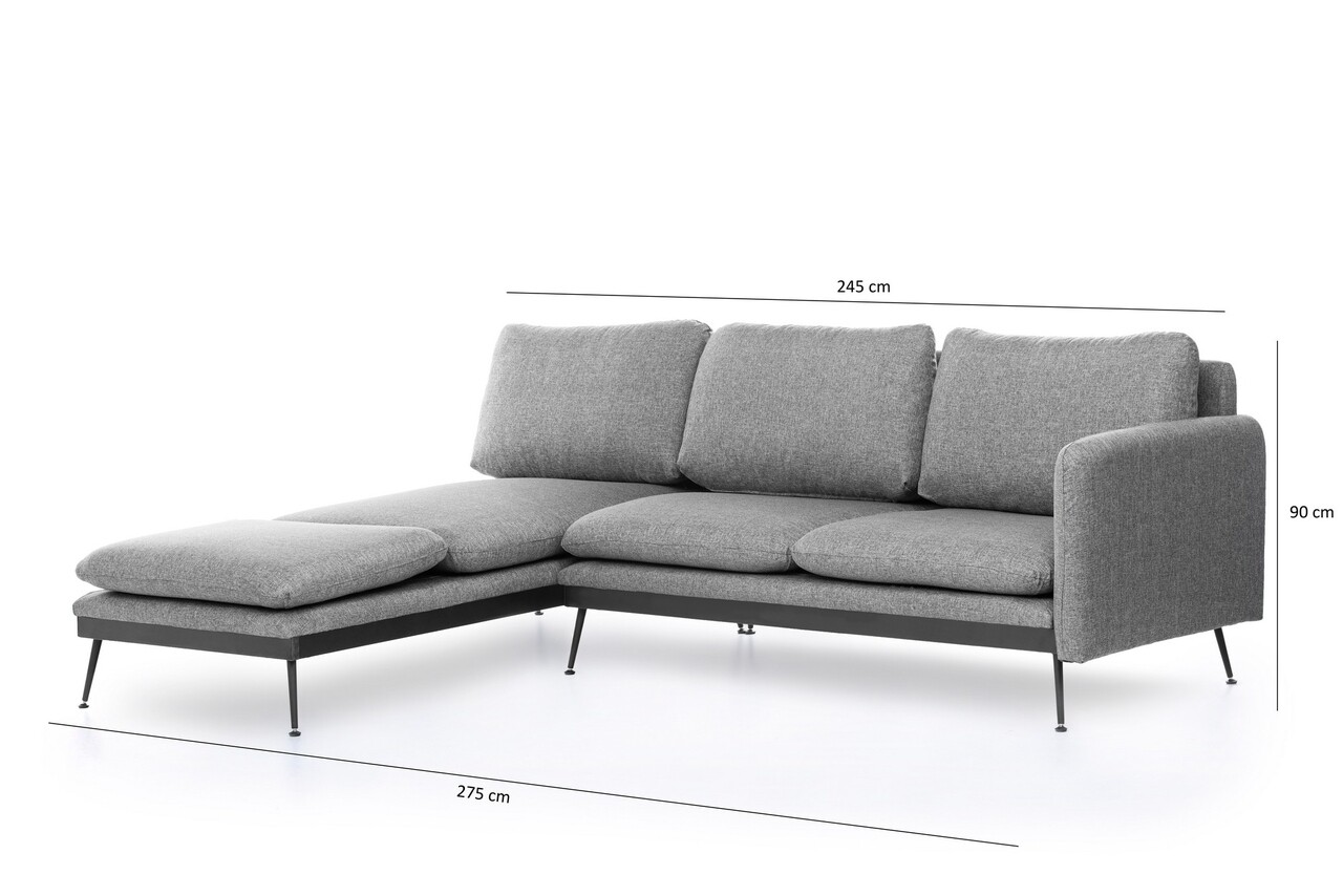 Coltar Reya Corner, Futon, 275x190x90 cm, metal, gri