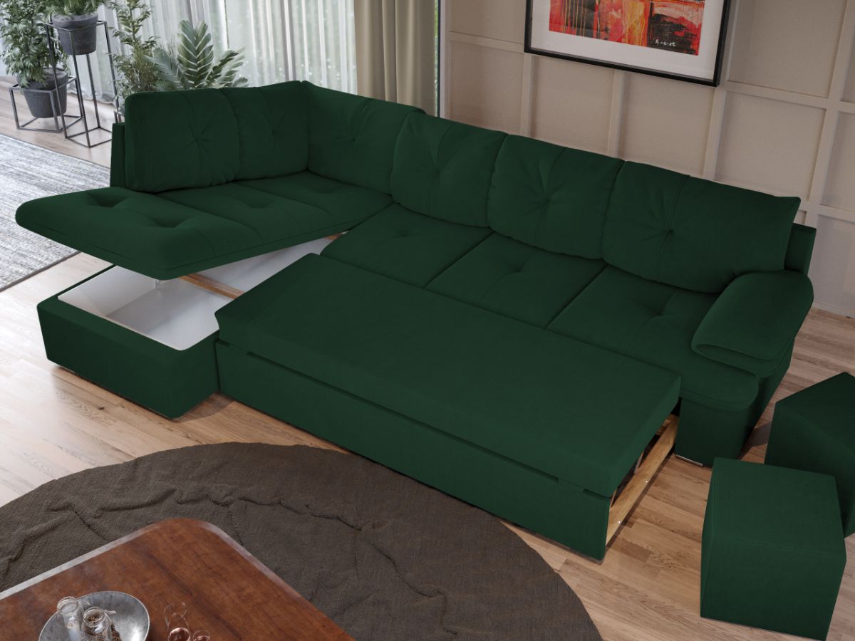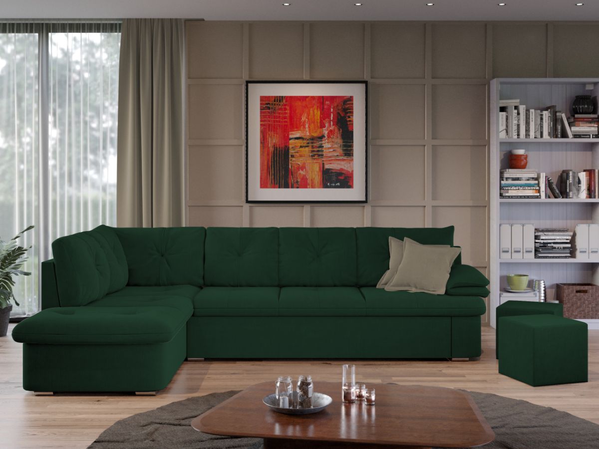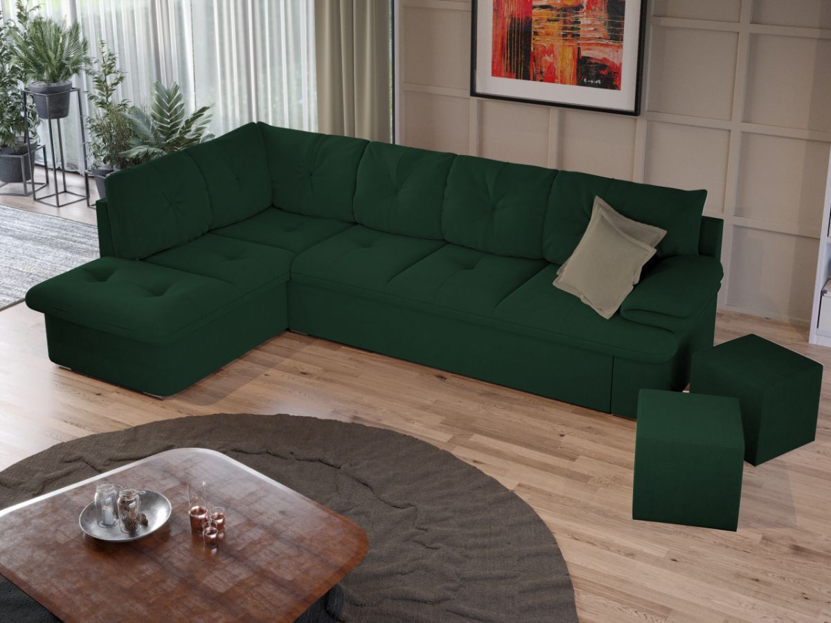 Coltar Roma + 1 loc Verde Coltar Roma + 1 loc Verde are un design modern si dimensiuni generoase. Pe langa nivelul de confort si relaxare pe care il ofera, acest coltar este alegerea potrivita pentru un living spatios. Se poate transforma intr-un pat in doar cateva minute si este prevazut cu lada pentru depozitare pozitionata sub sezlong, care poate fi accesata prin ridicarea partii superioare a acestuia. Coltarul are dimensiunea de: 300 cm lungime, 185 cm latime, 85 cm inaltime totala . Dupa extindere, obtineti un spatiu pentru odihna si relaxare, cu suprafata utila 230 x 125 cm . Este tapitat cu stofa de calitate pe diverse culori. Pernele nu sunt detasabile. Atentie: Pretul afisat nu include alte accesorii sau obiecte de decor. Taburetele, pernele deco si draperiile se pot achizitiona optional. Livrare gratuita si rapida, 4-10 zile lucratoare prin flota proprie Suntem producatori de tapiterii, fara intermediari Toate piesele de tapiterii au o garantie de 2 ani Sezutul si extensia coltarului sunt din poliuretan High Resilience . Scheletul este rezistent, realizat pe structura solida de fag si pal. Extensia de tip sertar este pozitionata sub sezutul coltarului. Se deschide ca un sertar, apoi se ridica salteaua din interiorul acestuia. Coltar Roma + 1 loc Verde se incadreaza cu usurinta in majoritatea locuintelor indiferent de stilul acestora. Puteti alege din mai multe culori pentru stofa. Produsele disponibile le puteti vedea aici Modele Roma . Dimensiuni Coltar Roma + 1 loc Lungime: 300cm Latime: 185 cm Lungime intre brate: 230 cm Inaltime sezut: 29 cm Inaltime : 85 cm Adancime sezut: 60 cm Adancime selon 150 cm Latime sezlon 100 cm Dimensiuni extinsa Lungime extinsa: 230 cm Adancime extinsa: 125 cm Tapiterie Coltar Roma + 1 loc Verde Tapiteria produsului este din stofa Verde. Nuanta acestui produs nu este pretentioasa, mascheaza eventualele evenimente neplacute prin care se poate murdari sau pata si se integreaza perfect in majoritatea locuintelor. Intretinere: se recomanda ca praful sa se stearga cu un material textil moale (finet) umed si sa nu se curete cu agenti chimici (diluant, acetona). Imaginile sunt cu titlu de prezentare si pot avea mici diferente de nuante in functie de display. Dimensiunile sunt exprimate în centimetri și pot oscila între ± 50 mm.