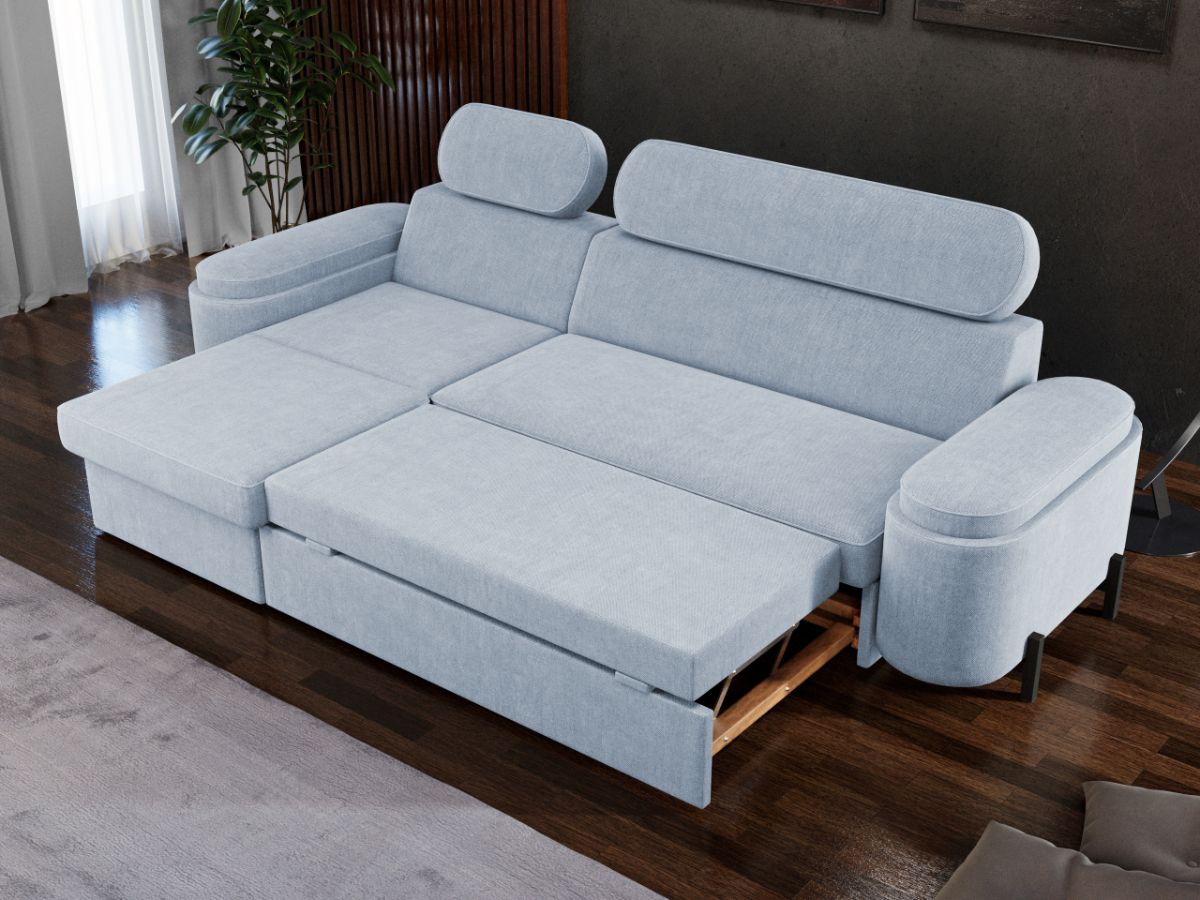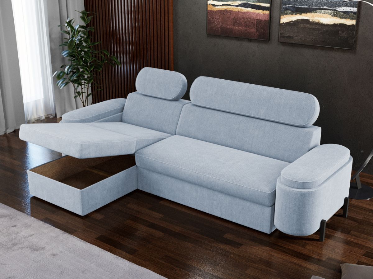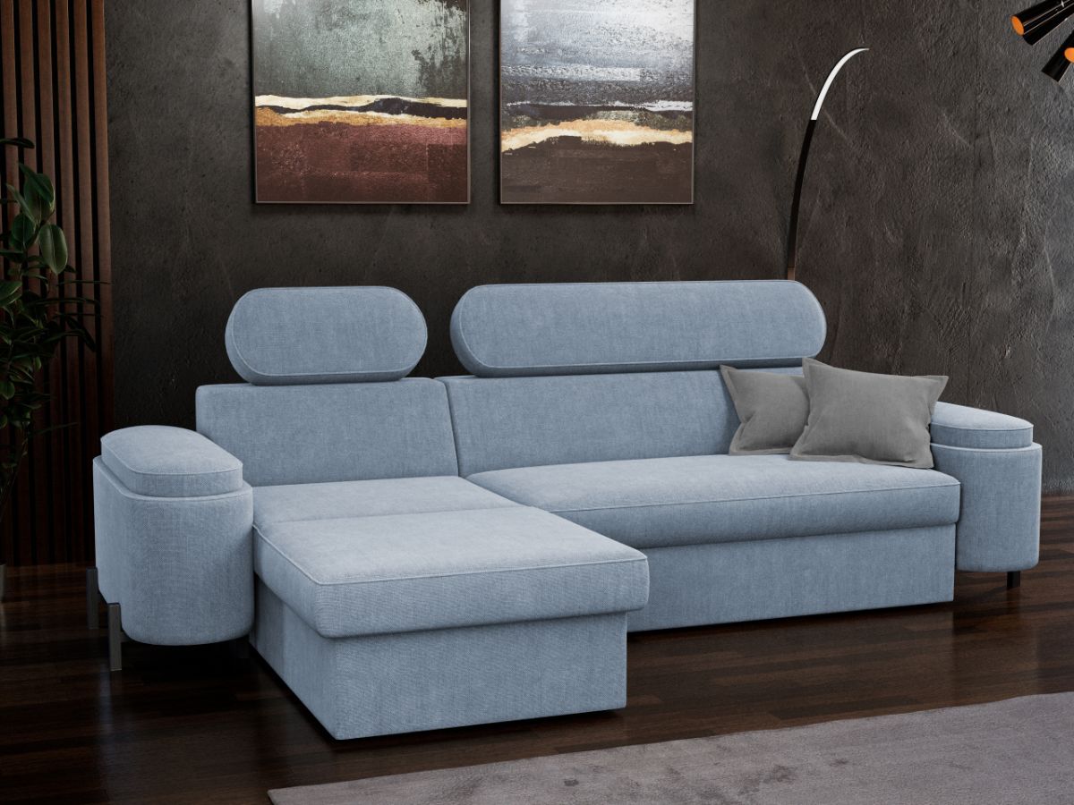 Coltar Roua Cremona 70 Coltar Roua Cremona 70 completeaza fara efort orice stil de interior. Este o piesa de mobilier eleganta datorita formelor usor rotunjite si a picioarelor inalte negre . In ciuda designului sau sofisticat, acest coltar nu face compromisuri in ceea ce priveste confortul, in special datorita tetierelor reglabile . Indiferent daca va incantati cu o carte buna, va bucurati de o seara de film sau pur si simplu va relaxati dupa o zi lunga, coltarul Roua ofera locul perfect pentru a va petrece serile. Printre cele mai importante functii ale acestuia este capacitatea de a se transforma intr-un pat confortabil de 195 x 145 cm . Este prevazut cu lada de depozitare si are dimensiunile de: 285 cm lungime, 165 cm latime, 85 cm inaltime totala . Este tapitat cu o stofa premium uni pe diverse culori. Atentie: Pretul afisat nu include alte accesorii sau obiecte de decor. Taburetele, pernele deco si draperiile se pot achizitiona optional. Livrare gratuita si rapida, 4-10 zile lucratoare prin flota proprie Suntem producatori de tapiterii, fara intermediari Toate piesele de tapiterii au o garantie de 2 ani Sezutul si extensia coltarului sunt din poliuretan High Resilience . Scheletul este rezistent, realizat pe structura solida de fag si pal . Extensia de tip sertar este pozitionata sub sezutul coltarului. Se deschide ca un sertar, apoi se ridica salteaua din interiorul acestuia. Coltar Roua Cremona 70 se incadreaza cu usurinta in majoritatea locuintelor indiferent de stilul acestora. Puteti alege din mai multe culori pentru stofa. Produsele disponibile le puteti vedea aici Modele Roua . Dimensiuni Coltar Roua Lungime: 285 cm Latime: 165 cm Inaltime totala: 85 cm Inaltime sezut: 46 cm Adancime sezut: 63 cm Inaltime brate: 56 cm Lungime brate: 90 cm Adancime sezlon 133 cm Latime sezlon 80 cm Inaltime picior: 9 cm Dimensiuni extins Lungime extins: 220 cm Adancime extins: 133 cm Tapiterie Coltar Roua Cremona 70 Tapiteria produsului este din stofa Blue Sky Albastru deschis – Cremona 70 . Nuanta acestui produs nu este pretentioasa, mascheaza eventualele evenimente neplacute prin care se poate murdari sau pata si se integreaza perfect in majoritatea locuintelor. Intretinere: se recomanda ca praful sa se stearga cu un material textil moale (finet) umed si sa nu se curete cu agenti chimici (diluant, acetona). Imaginile sunt cu titlu de prezentare si pot avea mici diferente de nuante in functie de display. Dimensiunile sunt exprimate în centimetri și pot oscila între ± 50 mm.