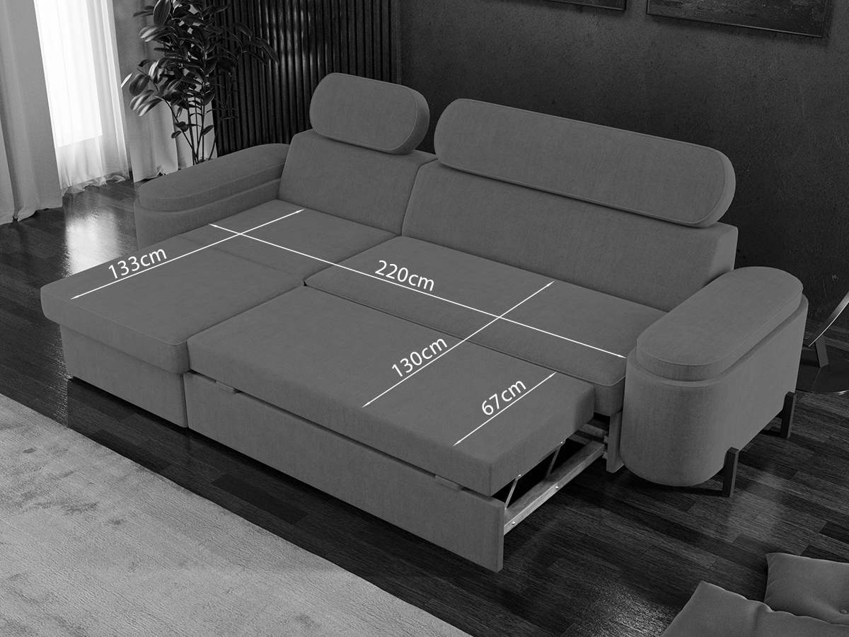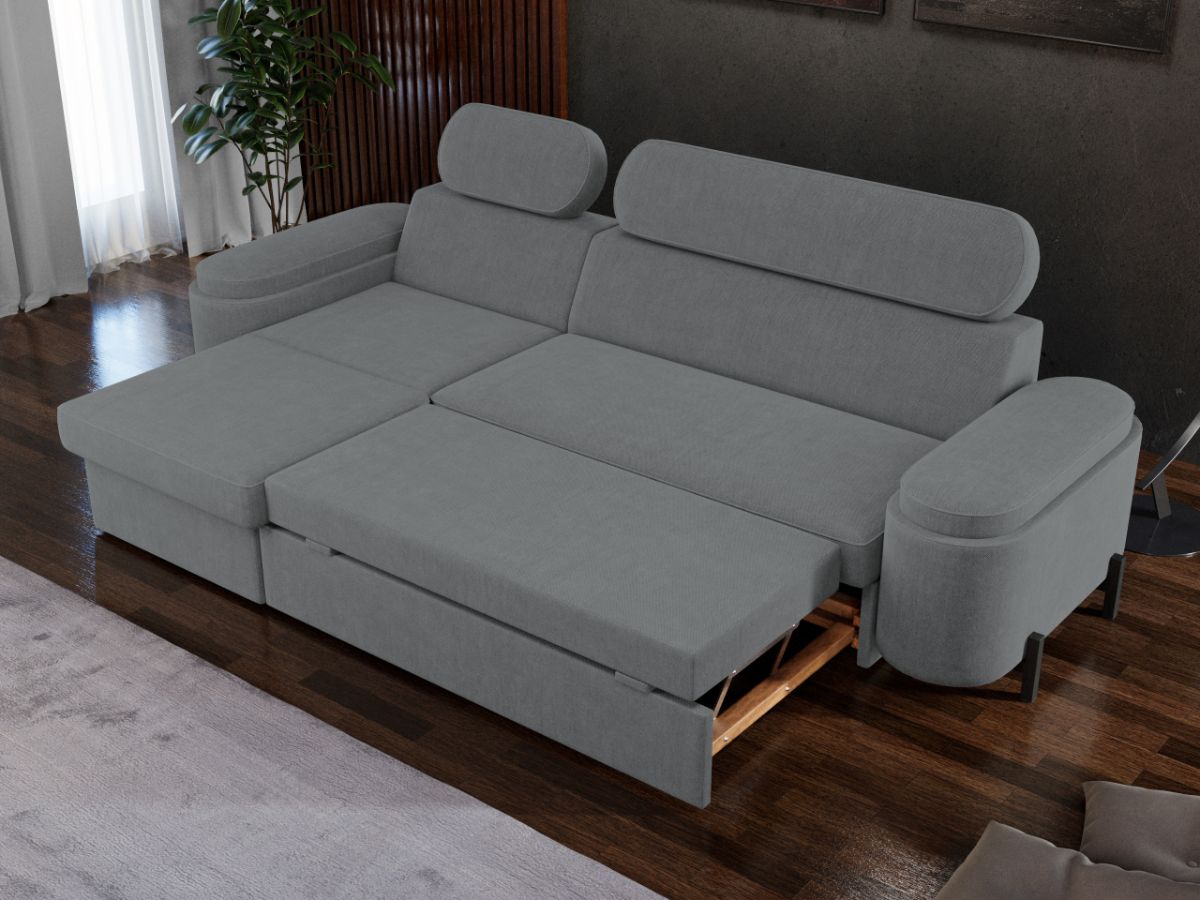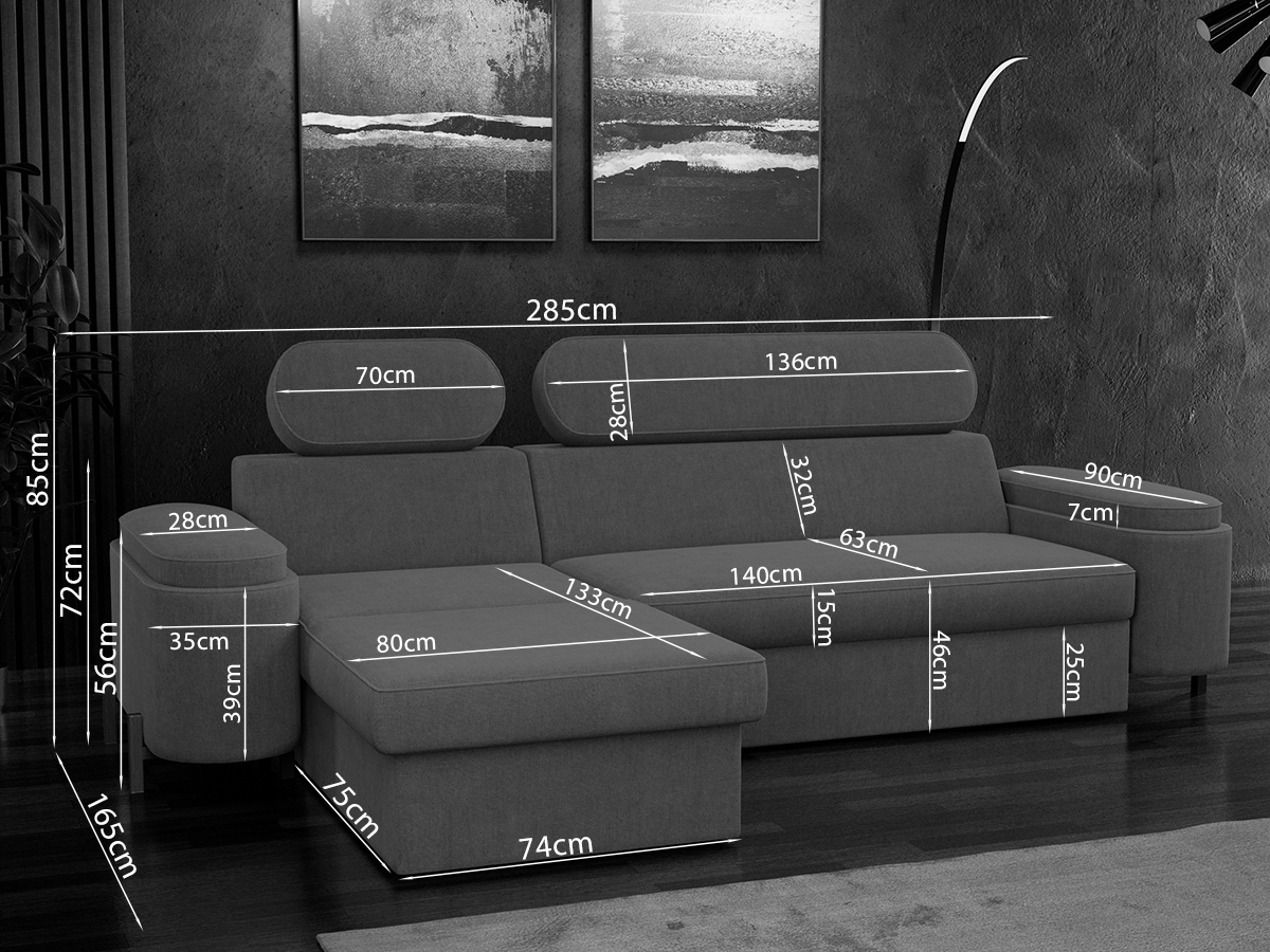 Coltar Roua Whisper 17 Coltar Roua Whisper 17 completeaza fara efort orice stil de interior. Este o piesa de mobilier eleganta datorita formelor usor rotunjite si a picioarelor inalte negre . In ciuda designului sau sofisticat, acest coltar nu face compromisuri in ceea ce priveste confortul, in special datorita tetierelor reglabile . Indiferent daca va incantati cu o carte buna, va bucurati de o seara de film sau pur si simplu va relaxati dupa o zi lunga, coltarul Roua ofera locul perfect pentru a va petrece serile. Printre cele mai importante functii ale acestuia este capacitatea de a se transforma intr-un pat confortabil de 195 x 145 cm . Este prevazut cu lada de depozitare si are dimensiunile de: 285 cm lungime, 165 cm latime, 85 cm inaltime totala . Este tapitat cu o stofa premium uni pe diverse culori. Atentie:  Pretul afisat nu include alte accesorii sau obiecte de decor. Taburetele, pernele deco si draperiile se pot achizitiona optional. Livrare gratuita si rapida, 4-10 zile lucratoare prin flota proprie Suntem producatori de tapiterii, fara intermediari Toate piesele de tapiterii au o garantie de 2 ani Sezutul  si  extensia  coltarului sunt din  poliuretan High Resilience . Scheletul este rezistent, realizat pe structura solida de fag si pal . Extensia de tip sertar este pozitionata sub sezutul coltarului. Se deschide ca un sertar, apoi se ridica salteaua din interiorul acestuia. Coltar Roua Whisper 17 se incadreaza cu usurinta in majoritatea locuintelor indiferent de stilul acestora. Puteti alege din mai multe culori pentru stofa. Produsele disponibile le puteti vedea aici Modele Roua . Dimensiuni Coltar Roua Lungime: 285 cm Latime: 165 cm Inaltime totala: 85 cm Inaltime sezut: 46 cm Adancime sezut: 63 cm Inaltime brate: 56 cm Lungime brate: 90 cm Adancime sezlon 133 cm Latime sezlon 80 cm Inaltime picior: 9 cm Dimensiuni extins Lungime extins: 220 cm Adancime extins: 133 cm Tapiterie Coltar Roua Whisper 17 Tapiteria produsului este din stofa Gri – Whisper 17 . Nuanta acestui produs nu este pretentioasa, mascheaza eventualele evenimente neplacute prin care se poate murdari sau pata si se integreaza perfect in majoritatea locuintelor. Intretinere: se recomanda ca praful sa se stearga cu un material textil moale (finet) umed si sa nu se curete cu agenti chimici (diluant, acetona). Imaginile sunt cu titlu de prezentare si pot avea mici diferente de nuante in functie de display. Dimensiunile sunt exprimate în centimetri și pot oscila între ± 50 mm.