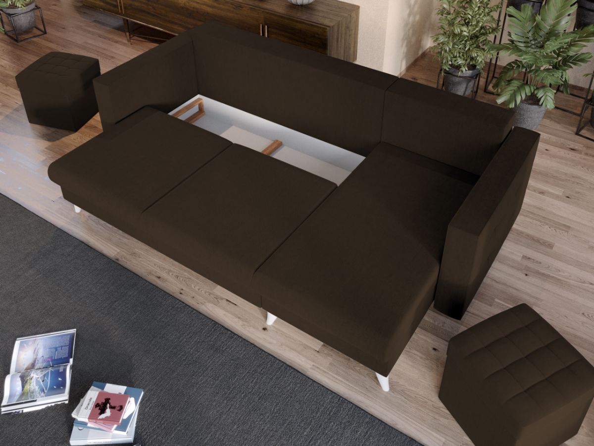 Coltar Santorini Maro Coltar Santorini Maro are un design modern, contemporan, cu un stil aparte. Picioarele sunt cu o forma usor arcuita si de culoare ivory. Se poate transforma intr-un pat confortabil in doar cateva minute si este prevazut cu lada de depozitare . Ofera confort prin cele 3 perne detasabile, iar butonii de pe acestea si de pe brate dau un plus de eleganta si stil oricarui living. Este recomandat atat pentru incaperi mici sau mari si are dimensiunea de: 250 cm lungime, 150 cm latime, 90 cm inaltime totala . Dupa extindere, obtineti un spatiu pentru odihna si relaxare, cu suprafata utila 220 x 150 cm . Este tapitat cu o stofa de calitate uni pe diverse culori. Atentie: Pretul afisat nu include alte accesorii sau obiecte de decor. Taburetele, pernele deco si draperiile se pot achizitiona optional. Livrare gratuita si rapida, 4-10 zile lucratoare prin flota proprie Suntem producatori de tapiterii, fara intermediari Toate piesele de tapiterii au o garantie de 2 ani Sezutul si extensia coltarului sunt pe relaxa (arcuri elicoidale și poliuretan) . Lada incorporata este ideala pentru depozitarea lenjeriei sau a altor obiecte. Scheletul este rezistent, realizat pe structura solida de fag si pal. Extensia este de tip Doppelliege ce prezinta un sistem actionat prin role, astfel ca partea de sezut se trage si permite partii de spatar sa gliseze spre partea din fata si sa se pozitioneze orizontal. Coltar Santorini Maro se incadreaza cu usurinta in majoritatea locuintelor indiferent de stilul acestora. Puteti alege din mai multe culori pentru stofa. Produsele disponibile le puteti vedea aici Modele Santorini . Videoclipul contine alta nuanta decat cea de pe pagina produsului, acesta avand ca scop prezentarea familiei pentru a se reda in detaliu aspectul materialului. Dimensiuni Coltar Santorini Maro Lungime: 250 cm Latime: 150 cm Lungime intre brate: 220 cm Inaltime sezut: 48 cm Adancime sezut: 80 cm (fara perne) Adancime sezut: 65 cm (pana in perne) Inaltime cu perne: 90 cm Inaltime fara perne: 75 cm Dimensiuni extins Lungime extins: 220 cm Adancime extins: 150 cm Dimensiuni brate Inaltime brate: 69 cm Lungime brate: 96 cm Tapiterie Coltar Santorini Maro Tapiteria produsului este din stofa Maro . Nuanta acestui produs nu este pretentioasa, mascheaza eventualele evenimente neplacute prin care se poate murdari sau pata si se integreaza perfect in majoritatea locuintelor. Intretinere: se recomanda ca praful sa se stearga cu un material textil moale (finet) umed si sa nu se curete cu agenti chimici (diluant, acetona). Imaginile sunt cu titlu de prezentare si pot avea mici diferente de nuante in functie de display. Dimensiunile sunt exprimate în centimetri și pot oscila între ± 50 mm.