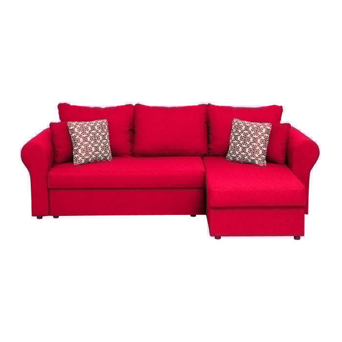 Coltar SARA II extensibil, cu lada depozitare, colt interschimbabil, rosu + print MZT rosu, 248x143x83 cm