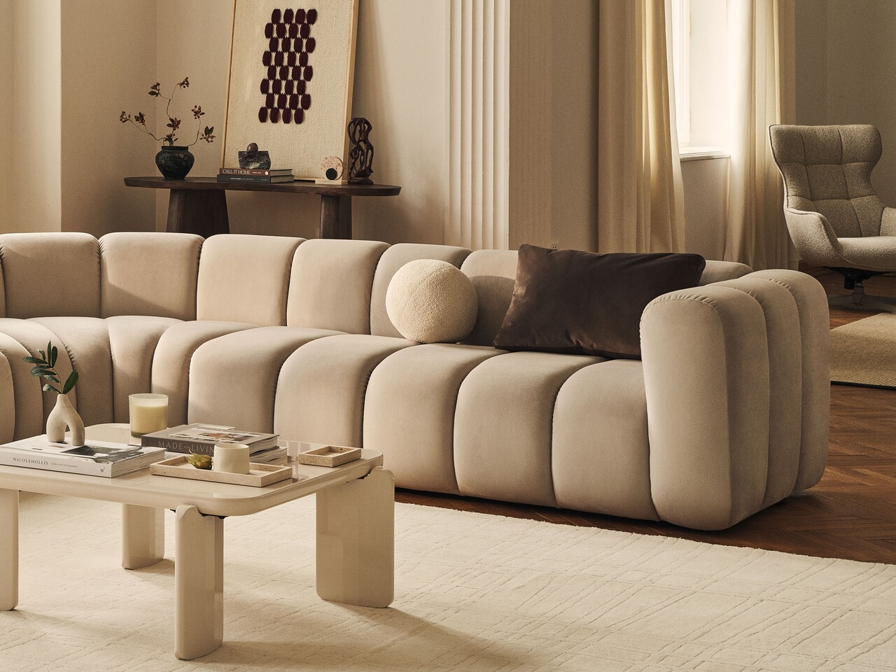 Brandul Micadoni Home este rezultatul multor ani de pasiune in domeniul designului de mobilier. Acesta se adreseaza clientilor care iubesc interioarele confortabile si moderne. Gama larga de culori si designul unic subliniaza caracterul marcii. Atmosferele diferite create de fiecare colectie vor atrage clientii care vor aprecia confortul, formele moderne si calitatea materialelor selectate.Tesatura de tapiterie chenille cu o suprafata captivanta cu efect 3D. Este foarte placuta si usor matasoasa la atingere (asa-numita atingere de matase). Structura sa are forma unei tesaturi pronuntate si o suprafata usor iridescenta. Firele vopsite neuniform creeaza o textura atragatoare, cu un efect de umbre si luciu. Calitatea ridicata si caracterul expresiv al materialului confera mobilierului un aspect atractiv si senzual, permitandu-i sa fie utilizat pe scara larga in designul modern. Tesatura este foarte durabila, murdaria minora abia fiind vizibila. Materialul este disponibil intr-o gama larga de culori. Se caracterizeaza printr-o rezistenta ridicata la abraziune, care ofera mobilierului un aspect estetic pentru o perioada foarte lunga de timp (test Martindale: 60.000, 490 g/mp, compozitie: 100% poliester). De asemenea, are o tendinta foarte redusa la scamosare. Tesatura este ignifuga, ceea ce minimizeaza riscul de propagare a incendiului. Siguranta pentru utilizator si lipsa substantelor nocive este confirmata de certificatul OEKO-TEX – STANDARD 100.Compozitie materialMaterial tapiterie: tesatura chenille din 100% poliesterTesatura rezistenta la uzura si frecari repetate: 60.000 de cicluri de frecare conform testului Martindale.Material structura: cadru din lemn masiv de pin, PAL, placi din fibre, placaj, arcuri, picioare din plastic negru.Compozitie umplutura spatar: spuma poliuretanica 18 kg/mc + vata 150 g/mpCompozitie umplutura sezut: spuma poliuretanica 30 kg/mc + vata 150 g/mp + benzi elasticeUmplutura cu arcuri: daInformatii si dimensiuni specificeLungime sezut: 223 cmInaltime sezut: 43 cmAdancime sezut: 68 cmInaltime spatar: 27 cm Inaltime brate: 68 cmLatime brate: 27 cmGreutate maxima suportata: 550 kgInaltime picioare: 3 cmPicioare din plastic de culoare neagra.Fabricat in Europa