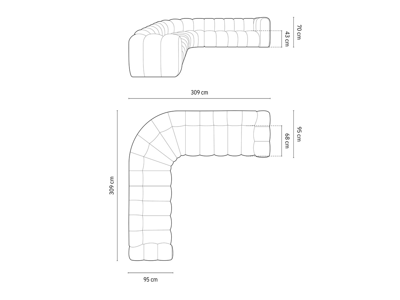 Coltar simetric modular 5 locuri, Lupine-140, Micadoni Home, 309x309x70 cm, tesatura chenille din poliester, bej deschis