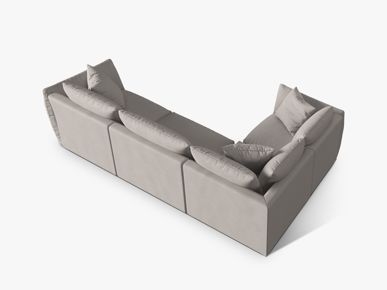 Brandul Micadoni Home este rezultatul multor ani de pasiune in domeniul designului de mobilier. Acesta se adreseaza clientilor care iubesc interioarele confortabile si moderne. Gama larga de culori si designul unic subliniaza caracterul marcii. Atmosferele diferite create de fiecare colectie vor atrage clientii care vor aprecia confortul, formele moderne si calitatea materialelor selectate.Lins este o tesatura inovatoare de tapiterie cu impletitura plata care contine in natural. Aceasta creeaza un efect de mélange distinctiv care aminteste de materialul denim. Datorita firelor fine de chenille, suprafata prezinta un model texturat foarte subtil, contribuind la finetea sa incredibila si la textura placuta.Tesatura are o constructie in doua straturi. Stratul inferior are o functie de ranforsare, iar structura sa in forma de bucla ofera un efect usor ondulat si un plus de rezistenta. O impletitura unica uneste cele doua straturi, eliminand necesitatea unui suport suplimentar.Tesatura Lins este durabila, usor de intretinut si are un aspect natural. Este o alegere excelenta pentru cei care apreciaza confortul si finisajele elegante in mobilierul lor.Compozitie materialMaterial tapiterie: tesatura structurata tip LinsTesatura rezistenta la uzura si frecari repetate: 60.000 de cicluri de frecare conform testului Martindale.Material structura: cadru din lemn masiv de pin, PAL, placi din fibre, placaj, arcuri, picioare din plastic negru.Compozitie umplutura spatar: spuma poliuretanica 30 kg/mc + spuma crisp + mix de siliconCompozitie umplutura sezut: spuma poliuretanica 30 kg/mc + spuma poliuretanica de inalta rezistenta 35 kg/mc + vata 600 g/mpUmplutura cu arcuri: daInformatii si dimensiuni specificeLungime sezut: 249 cmInaltime sezut: 43 cmAdancime sezut: 62 cmInaltime spatar: 37 cm Inaltime brate: 33 cmLatime brate: 70 cmLatime sezut meridian: 62 cmAdancime sezut meridian: 164 cmGreutate maxima suportata: 450 kgInaltime picioare: 5 cmPicioare din plastic de culoare neagra.Include 3 perne decorative 45×45 cm.Fabricat in Europa
