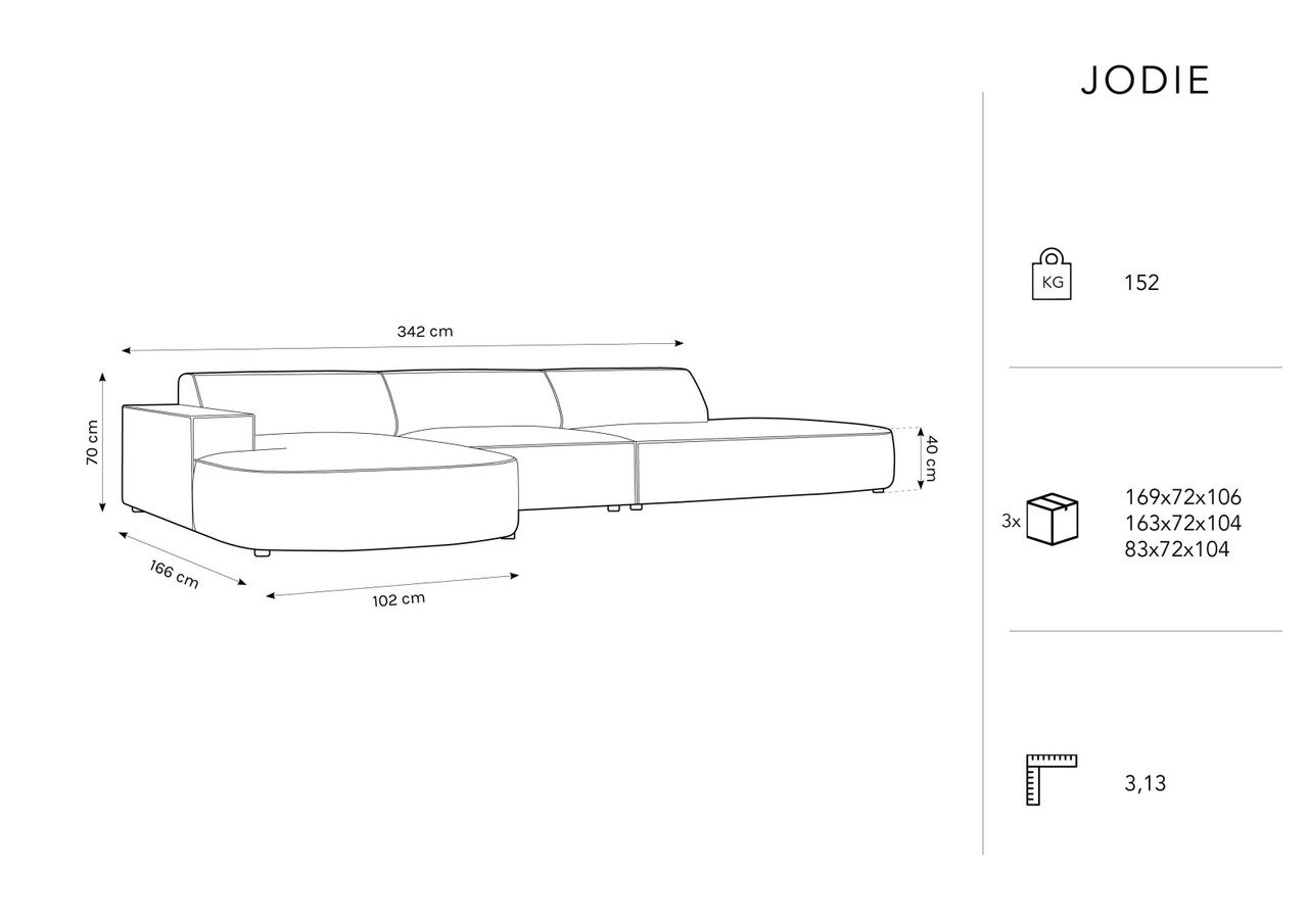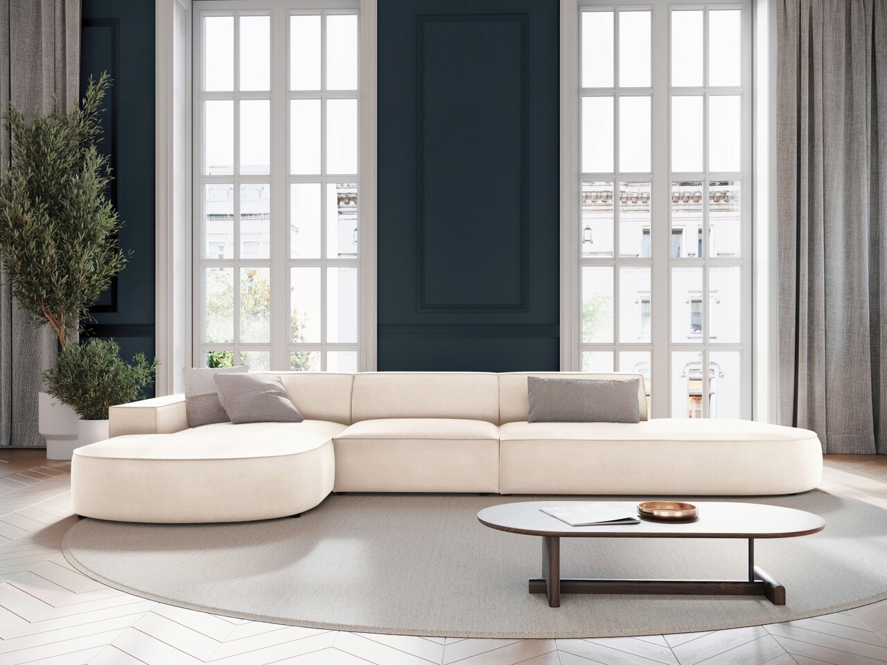 Coltar stanga 4 locuri, Jodie, Micadoni Home, BL, forma rotunjita, 342x166x70 cm, catifea, bej deschis