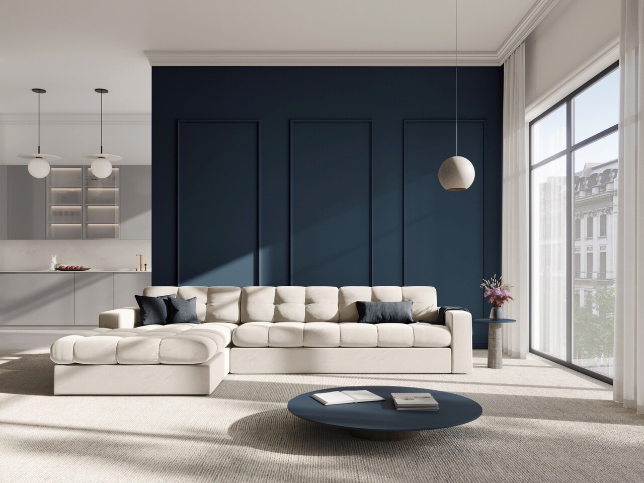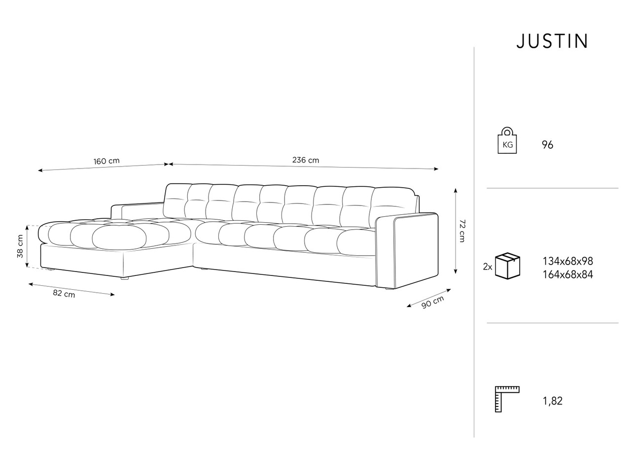Brandul Micadoni Home este rezultatul multor ani de pasiune in domeniul designului de mobilier. Acesta se adreseaza clientilor care iubesc interioarele confortabile si moderne. Gama larga de culori si designul unic subliniaza caracterul marcii.Atmosferele diferite create de fiecare colectie vor atrage clientii care vor aprecia confortul, formele moderne si calitatea materialelor selectate. Tapiterie din tesatura sintetica care imita catifeaua cu o stralucire delicata. O alegere perfecta pentru designul elegant al mobilierului. Are o rezistenta foarte buna la abraziune, ceea ce reduce semnificativ riscul de deteriorare (Test Martindale 50000, 320 g/m2). Materialul este extrem de moale, matasos la atingere. Tesatura a trecut testul tigarilor, ceea ce inseamna ca materialul este rezistent la aprindere prin combustie si flacara si respecta standardul PN-EN 1021-1: 2014-12.Compozitie materialMaterial tapiterie: catifea sinteticaMaterial structura: cadru din lemn masiv de pin, PAL, placi din fibra, placaj, arcuri, picioare din plastic negru.Compozitie umplutura sezut: spuma poliuretanica 30 kg/mc si vata 100 g/mpCompozitie umplutura spatar: spuma poliuretanica 25 kg/mc + vata 100 g/mpUmplutura cu arcuri: daInformatii si dimensiuni specificeLungime sezut: 130 cmAdancime sezut: 62/74 cmInaltime sezut: 38 cmInaltime spatar: 34 cmInaltime brate: 52 cmLatime brate: 16 cmGreutate maxima suportata: 450 kgProdusul nu necesita asamblare.Picioare din plastic de culoare neagra.Picioarele sunt asamblate.Inaltime picioare: 2 cmNumar picioare: 8Fabricat in Europa