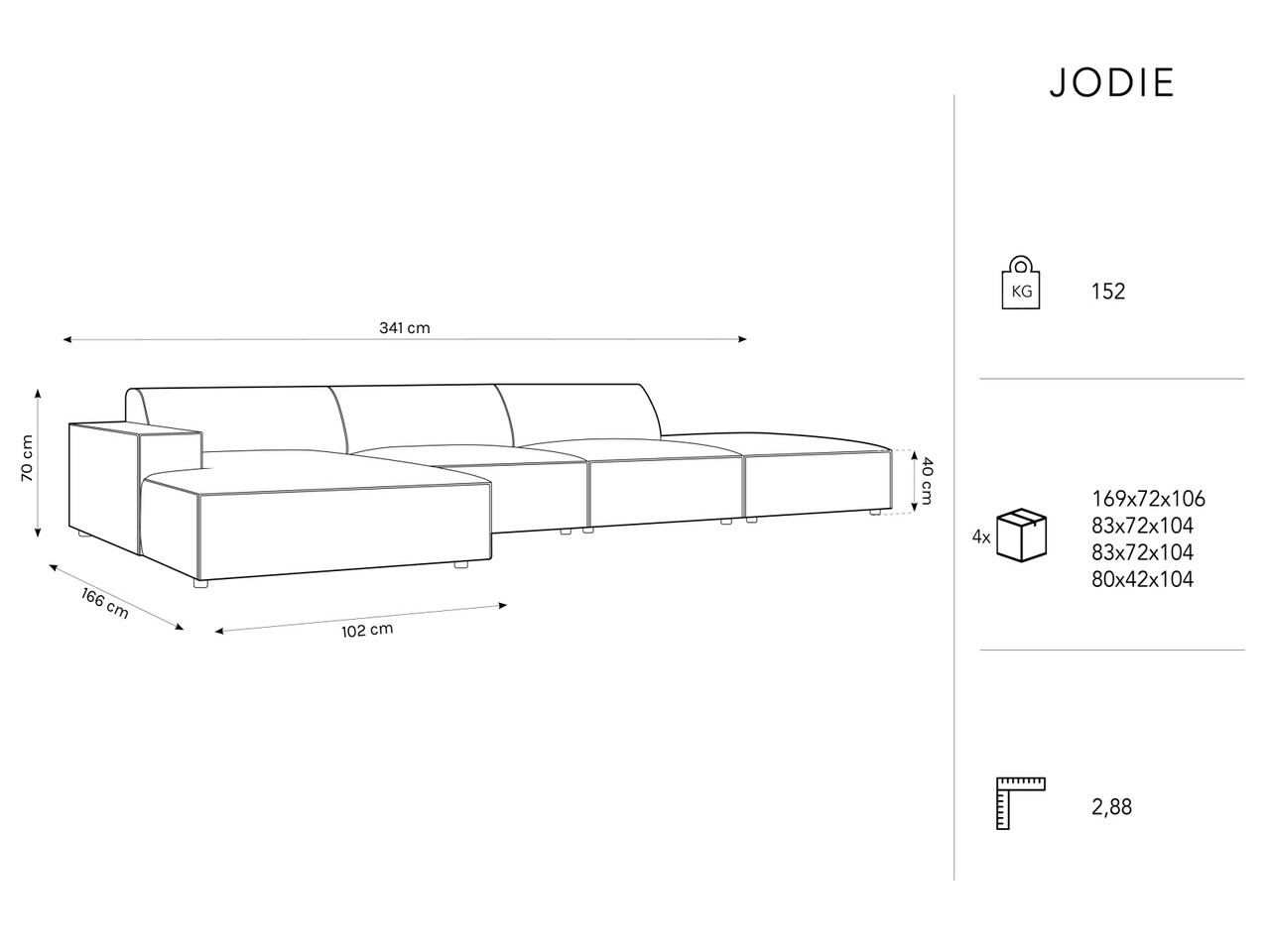 Coltar stanga 5 locuri, Jodie, Micadoni Home, BL, fara cotiera, 341x166x70 cm, catifea, verde