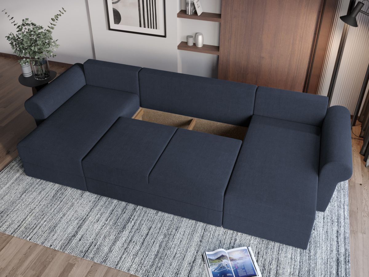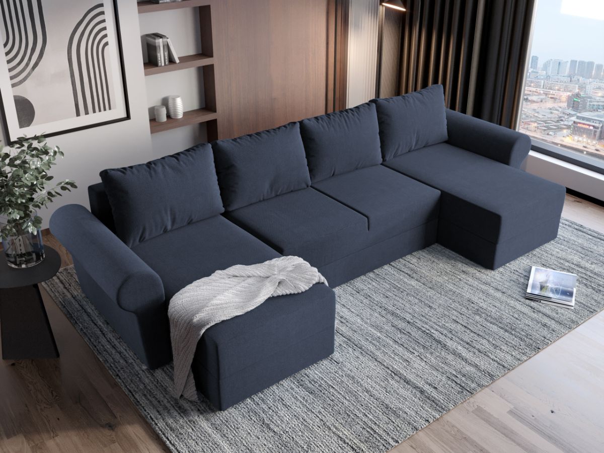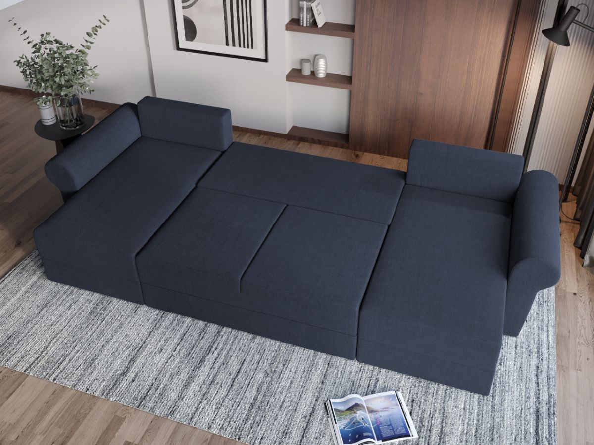 Oferta Coltar U Extensibil Bonito bleumarin Descopera Coltar U extensibil Bonito bleumarin cu design modern si un confort sporit datorat celor doua sezlonguri. Datorita modelului in forma de U , lateralele coltarului alcatuiesc doua sezlonguri spatioase . Este functional si practic, avand spatiu de depozitare, ideal pentru lenjerii si alte obiecte ce nu vrei sa stea la vedere. Coltarul are functie de dormit, astfel se poate transforma intr-un spatiu de dormit pentru tine sau oaspetii tai de 282×140 cm . Pernele detasabile iti asigura sustinere optima si relaxarea pe care o cauti dupa o zi lunga. Livrare gratuita si rapida, 4-10 zile lucratoare cu flota proprie Suntem producatori de tapiterii, fara intermediari Toate piesele de tapiterii au o garantie de 2 ani Sezutul si extensia sunt pe relaxa (arcuri elicoidale si poliuretan) . Extensia este de tip Doppelliege ce prezinta un sistem actionat prin role, astfel ca partea de sezut se trage si permite partii de spatar sa gliseze spre partea din fata si sa se pozitioneze orizontal. Coltar U Extensibil Bonito bleumarin se incadreaza cu usurinta in majoritatea locuintelor indiferent de stilul acestora. Puteti alege din mai multe culori pentru stofa. Produsele disponibile le puteti vedea aici Modele Coltare U Bonito . Videoclipul contine alta nuanta decat cea de pe pagina produsului, acesta avand ca scop prezentarea familiei pentru a se reda in detaliu aspectul materialului. Dimensiuni Coltar U Extensibil Bonito bleumarin Lungime: 330 cm Latime: 140 cm Lungime intre brate: 282 cm Lungime extins: 282 cm Adancime sezut fara perne: 80 cm Adancime sezut cu perne: 55 cm Adancime extins: 140 cm pe partea de canapea Inaltime cu perne: 85 cm Inaltime fara perne: 68 cm Inaltime sezut: 45 cm Tapiterie Coltar U Extensibil Bonito bleumarin Tapiteria produsului este din stofa Bleumarin . Nuanta acestui produs nu este pretentioasa, mascheaza eventualele evenimente neplacute prin care se poate murdari sau pata si se integreaza perfect in majoritatea locuintelor. Atentie: Pretul afisat nu include alte accesorii sau obiecte de decor. Taburetele, pernele deco si draperiile se pot achizitiona optional. Intretinere: se recomanda ca praful sa se stearga cu un material textil moale (finet) umed si sa nu se curete cu agenti chimici (diluant, acetona). Imaginile sunt cu titlu de prezentare si pot avea mici diferente de nuante in functie de display. Dimensiunile sunt exprimate în centimetri și pot oscila între ± 50 mm. DESCARCA SCHITA DE MONTAJ