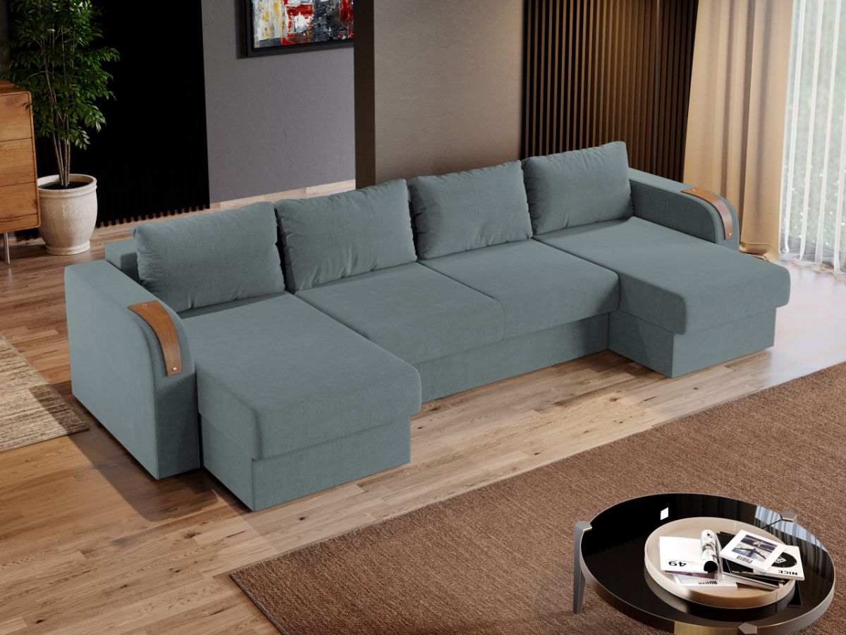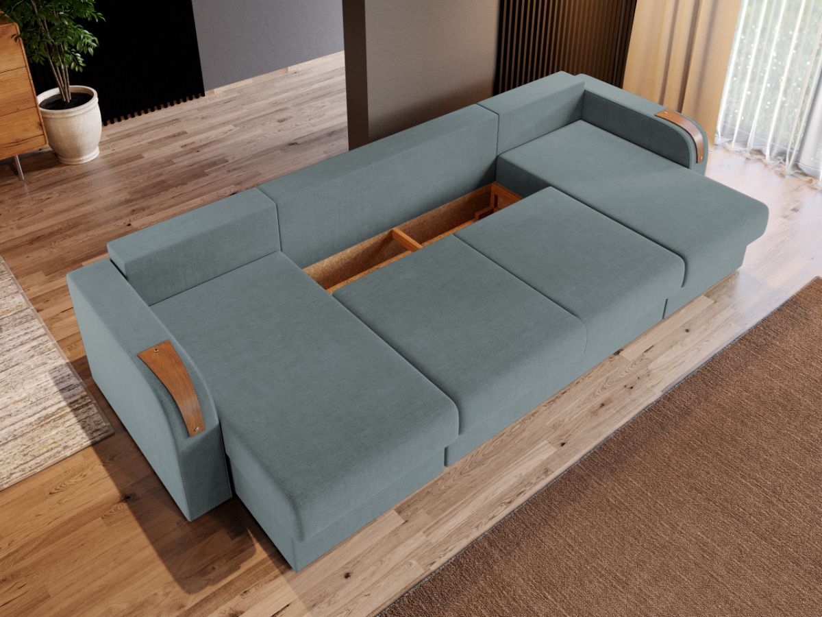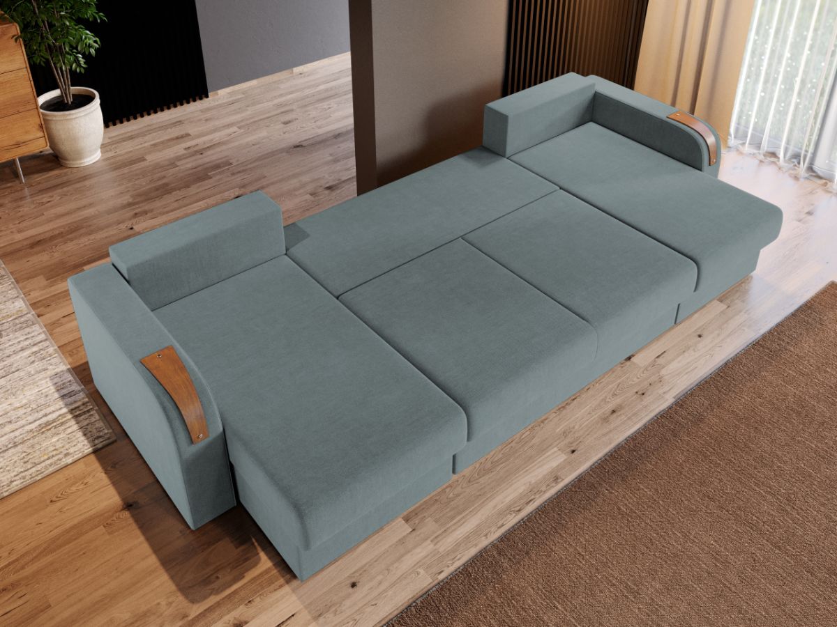 Oferta Coltar U Extensibil Morelia turcoaz Barrel 72 Ofera-ti mai mult confort!  Coltar U Extensibil Morelia turcoaz Barrel 72 elegant, functional si spatios pentru livingul tau. Serile in familia sau alaturi de prieteni, dar si momentele tale de relaxare sunt mai confortabile. Datorita modelului in  forma de U , lateralele coltarului alcatuiesc  doua sezlonguri spatioase. Lada de depozitare  incorporata asezata sub sezut te ajuta sa iti pastrezi lenjeria, pernele si alte obiecte ce nu vrei sa stea la vedere.  Pernele detasabile  iti asigura sustinere optima si relaxarea pe care o cauti dupa o zi lunga.  Spatiul de dormit  dupa extindere este generos, de 282×145 cm , iar somnul tau sau al musafirilor este mult mai odihnitor. Livrare gratuita si rapida, 4-10 zile lucratoare cu flota proprie Suntem producatori de tapiterii, fara intermediari Toate piesele de tapiterii au o garantie de 2 ani Sezutul si extensia sunt pe relaxa (arcuri elicoidale si poliuretan) . Extensia este de tip Doppelliege ce prezinta un sistem actionat prin role, astfel ca partea de sezut se trage si permite partii de spatar sa gliseze spre partea din fata si sa se pozitioneze orizontal. Coltar U Extensibil Morelia turcoaz Barrel 72 se incadreaza cu usurinta in majoritatea locuintelor indiferent de stilul acestora. Puteti alege din mai multe culori pentru stofa. Produsele disponibile le puteti vedea aici  Modele Coltare U Morelia . Dimensiuni Coltar U Extensibil Morelia turcoaz Barrel 72 Lungime: 310 cm Latime: 145 cm Lungime intre brate: 282 cm Lungime extins: 282 cm Adancime sezut fara perne: 82 cm Adancime sezut cu perne: 60 cm Adancime extins: 145 cm pe partea de canapea Inaltime cu perne: 85 cm Inaltime brate: 64 cm Inaltime sezut: 42 cm Tapiterie Coltar U Extensibil Morelia turcoaz Barrel 72 Tapiteria produsului este din stofa turcoaz – Barrel 72.  Nuanta acestui produs nu este pretentioasa, mascheaza eventualele evenimente neplacute prin care se poate murdari sau pata si se integreaza perfect in majoritatea locuintelor. Atentie:  Pretul afisat nu include alte accesorii sau obiecte de decor. Taburetele, pernele deco si draperiile se pot achizitiona optional. Intretinere:  se recomanda ca praful sa se stearga cu un material textil moale (finet) umed si sa nu se curete cu agenti chimici (diluant, acetona). Imaginile sunt cu titlu de prezentare si pot avea mici diferente de nuante in functie de display. Dimensiunile sunt exprimate în centimetri și pot oscila între ± 50 mm. DESCARCA SCHITA DE MONTAJ
