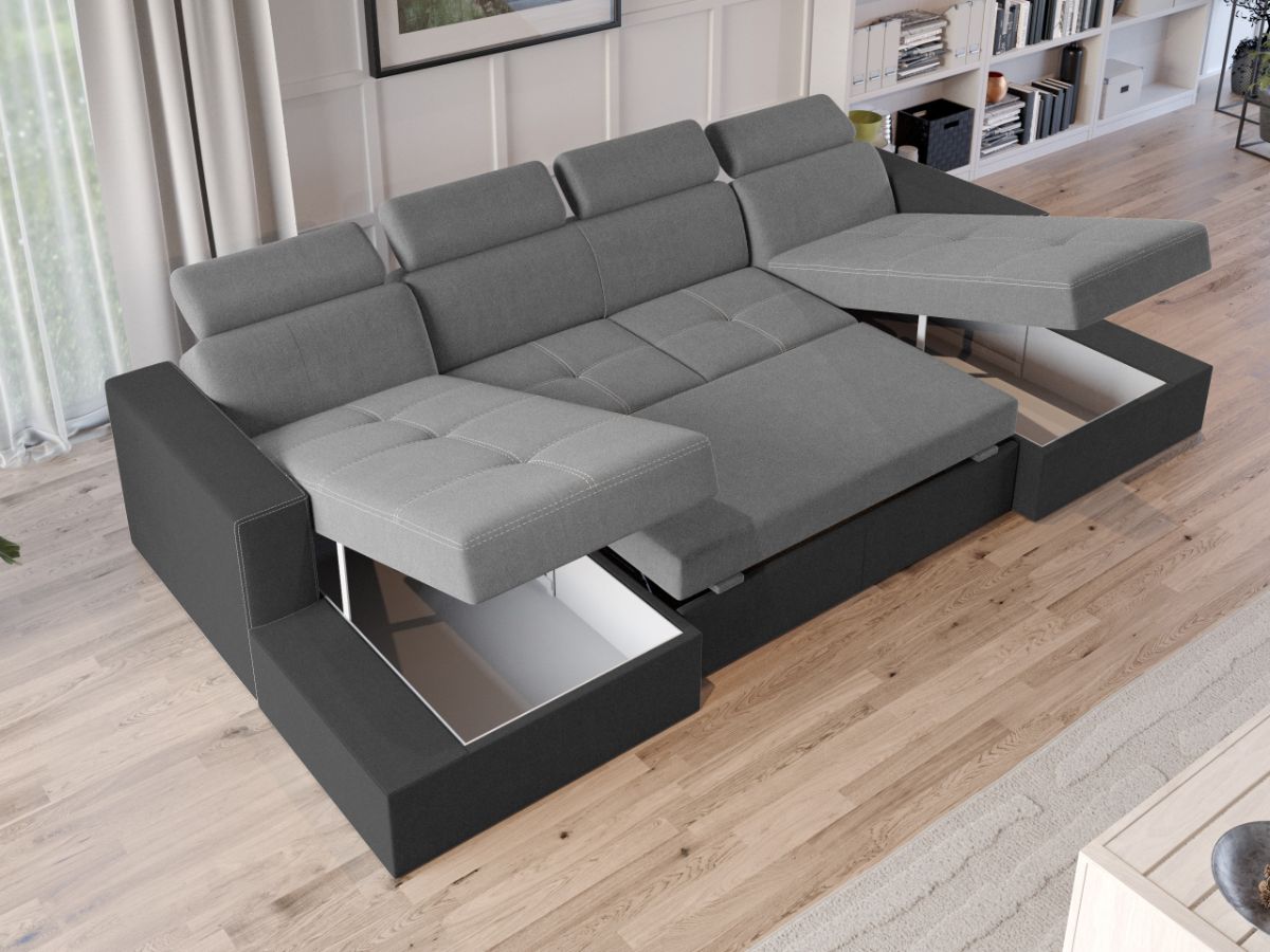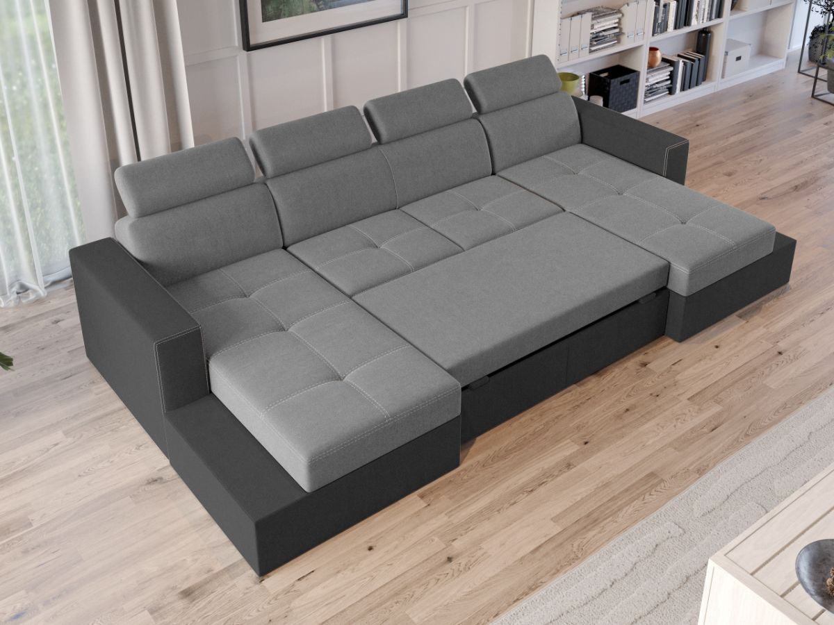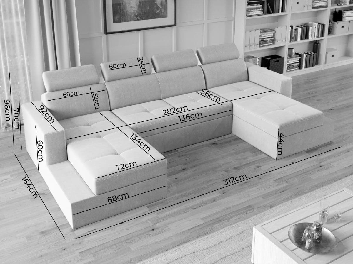 Oferta Coltar U Extensibil Paloma gri deschis / gri Descopera Coltar U extensibil Paloma gri deschis / gri ideal pentru a petrece seara cu intreaga familie sau doar pentru a te relaxa citind, vizionand filme sau socializand cu prietenii. Tetierele, pe langa aspectul aparte, au si un mecanism de reglare pe inaltime pentru un confort sporit. Se poate transforma intr-un pat confortabil de 282×125 cm in doar cateva minute. Are spatiu de depozitare generos, fiind prevazut cu 2 lazi de depozitare asezate sub cele doua sezlonguri. Acestea sunt potrivite pentru depozitarea lenjeriei de pat, a pernelor sau a paturii. Livrare gratuita si rapida, 4-10 zile lucratoare cu flota proprie Suntem producatori de tapiterii, fara intermediari Toate piesele de tapiterii au o garantie de 2 ani Sezutul este pe relaxa (arcuri elicoidale si poliuretan) si extensia este din poliuretan . Extensia de tip sertar este pozitionata sub sezutul coltarului. Se deschide ca un sertar, apoi se ridica salteaua din interiorul acestuia. Coltar U Extensibil Paloma gri deschis / gri se incadreaza cu usurinta in majoritatea locuintelor indiferent de stilul acestora. Puteti alege din mai multe culori pentru stofa. Produsele disponibile le puteti vedea aici Modele Coltare U Paloma . Videoclipul contine alta nuanta decat cea de pe pagina produsului, acesta avand ca scop prezentarea familiei pentru a se reda in detaliu aspectul materialului. Dimensiuni Coltar U Extensibil Paloma gri deschis / gri Lungime: 312 cm Latime: 164 cm Lungime intre brate: 282 cm Lungime extins: 282 cm Adancime sezut: 56 cm Adancime sezlon 134 cm Adancime extins: 125 cm, pe partea de canapea Inaltime cu tetiere: 96 cm Inaltime fara tetiere: 70 cm Inaltime sezut: 44 cm Tapiterie Coltar U Extensibil Paloma gri deschis / gri Tapiteria produsului este din stofa Gri deschis si Gri . Nuantele acestui produs nu sunt pretentioase, mascheaza eventualele evenimente neplacute prin care se pot murdari sau pata si se integreaza perfect in majoritatea locuintelor. Atentie: Pretul afisat nu include alte accesorii sau obiecte de decor. Taburetele, pernele deco si draperiile se pot achizitiona optional. Intretinere: se recomanda ca praful sa se stearga cu un material textil moale (finet) umed si sa nu se curete cu agenti chimici (diluant, acetona). Imaginile sunt cu titlu de prezentare si pot avea mici diferente de nuante in functie de display. Dimensiunile sunt exprimate în centimetri și pot oscila între ± 50 mm. DESCARCA SCHITA DE MONTAJ