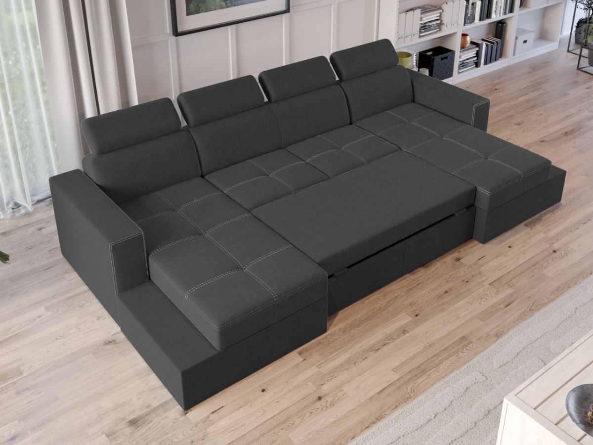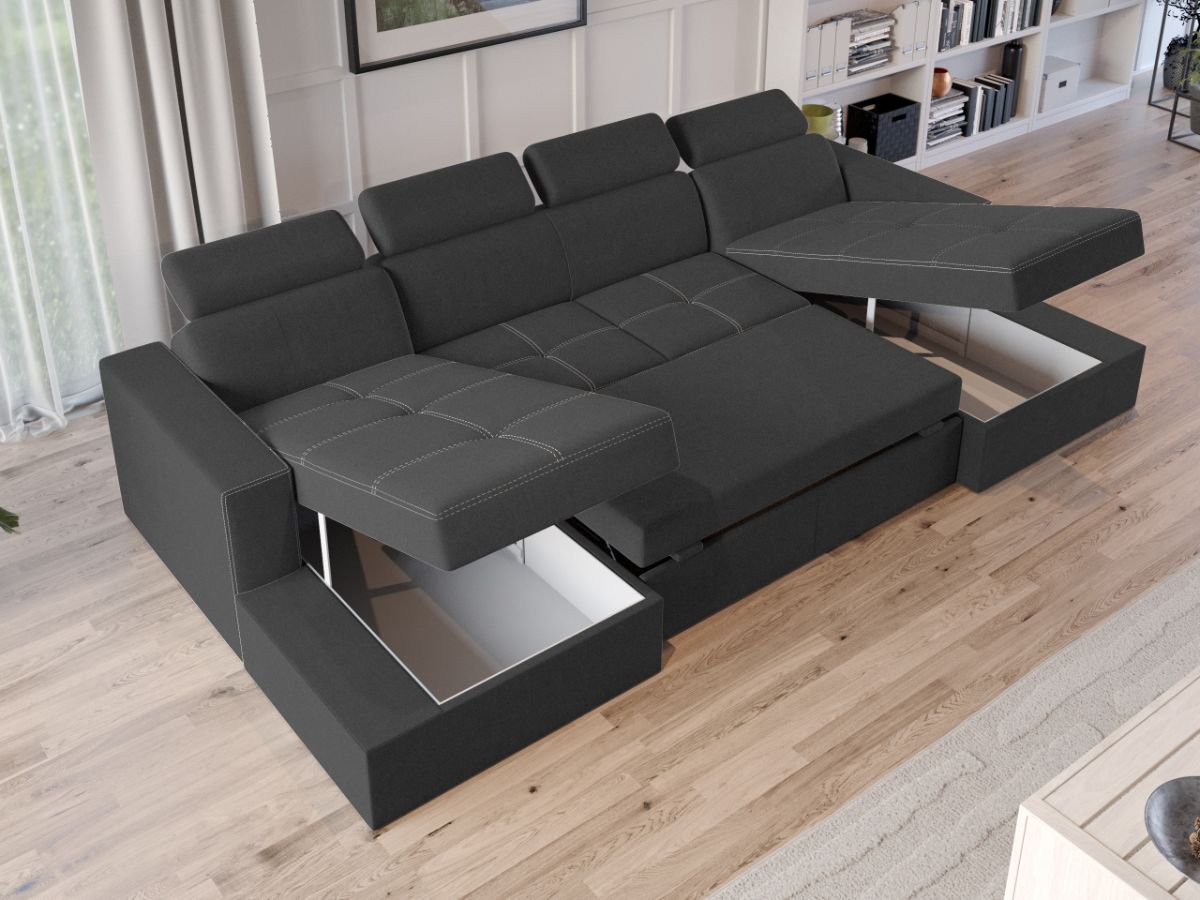 Oferta Coltar U Extensibil Paloma gri Descopera Coltar U extensibil Paloma gri ideal pentru a petrece seara cu intreaga familie sau doar pentru a te relaxa citind, vizionand filme sau socializand cu prietenii. Tetierele, pe langa aspectul aparte, au si un mecanism de reglare pe inaltime pentru un confort sporit. Se poate transforma intr-un pat confortabil de 282×125 cm in doar cateva minute. Are spatiu de depozitare generos, fiind prevazut cu 2 lazi de depozitare asezate sub cele doua sezlonguri. Acestea sunt potrivite pentru depozitarea lenjeriei de pat, a pernelor sau a paturii. Livrare gratuita si rapida, 4-10 zile lucratoare cu flota proprie Suntem producatori de tapiterii, fara intermediari Toate piesele de tapiterii au o garantie de 2 ani Sezutul este pe relaxa (arcuri elicoidale si poliuretan) si extensia este din poliuretan . Extensia de tip sertar este pozitionata sub sezutul coltarului. Se deschide ca un sertar, apoi se ridica salteaua din interiorul acestuia. Coltar U Extensibil Paloma gri se incadreaza cu usurinta in majoritatea locuintelor indiferent de stilul acestora. Puteti alege din mai multe culori pentru stofa. Produsele disponibile le puteti vedea aici Modele Coltare U Paloma . Videoclipul contine alta nuanta decat cea de pe pagina produsului, acesta avand ca scop prezentarea familiei pentru a se reda in detaliu aspectul materialului. Dimensiuni Coltar U Extensibil Paloma gri Lungime: 312 cm Latime: 164 cm Lungime intre brate: 282 cm Lungime extins: 282 cm Adancime sezut: 56 cm Adancime sezlon 134 cm Adancime extins: 125 cm, pe partea de canapea Inaltime cu tetiere: 96 cm Inaltime fara tetiere: 70 cm Inaltime sezut: 44 cm Tapiterie Coltar U Extensibil Paloma gri Tapiteria produsului este din stofa Gri . Nuanta acestui produs nu este pretentioasa, mascheaza eventualele evenimente neplacute prin care se poate murdari sau pata si se integreaza perfect in majoritatea locuintelor. Atentie: Pretul afisat nu include alte accesorii sau obiecte de decor. Taburetele, pernele deco si draperiile se pot achizitiona optional. Intretinere: se recomanda ca praful sa se stearga cu un material textil moale (finet) umed si sa nu se curete cu agenti chimici (diluant, acetona). Imaginile sunt cu titlu de prezentare si pot avea mici diferente de nuante in functie de display. Dimensiunile sunt exprimate în centimetri și pot oscila între ± 50 mm. DESCARCA SCHITA DE MONTAJ