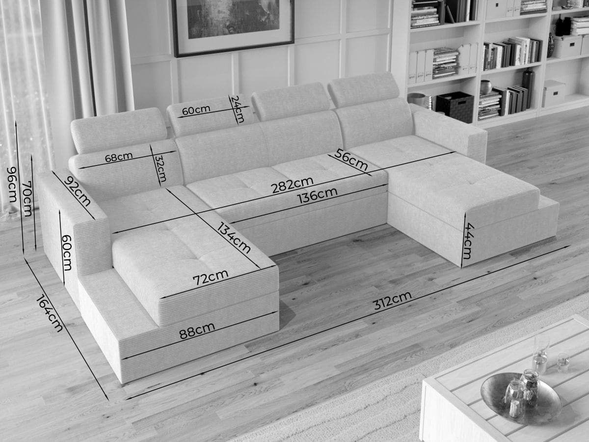Oferta Coltar U Extensibil Paloma reiat Zoom New 15 Descopera Coltar U extensibil Paloma reiat Zoom New 15 ideal pentru a petrece seara cu intreaga familie sau doar pentru a te relaxa citind, vizionand filme sau socializand cu prietenii. Tetierele, pe langa aspectul aparte, au si un mecanism de reglare pe inaltime pentru un confort sporit. Se poate transforma intr-un pat confortabil de 282×125 cm in doar cateva minute. Are spatiu de depozitare generos, fiind prevazut cu 2 lazi de depozitare asezate sub cele doua sezlonguri. Acestea sunt potrivite pentru depozitarea lenjeriei de pat, a pernelor sau a paturii. Livrare gratuita si rapida, 4-10 zile lucratoare cu flota proprie Suntem producatori de tapiterii, fara intermediari Toate piesele de tapiterii au o garantie de 2 ani Sezutul este pe relaxa (arcuri elicoidale si poliuretan) si extensia este din poliuretan . Extensia de tip sertar este pozitionata sub sezutul coltarului. Se deschide ca un sertar, apoi se ridica salteaua din interiorul acestuia. Coltar U Extensibil Paloma reiat Zoom New 15 se incadreaza cu usurinta in majoritatea locuintelor indiferent de stilul acestora. Puteti alege din mai multe culori pentru stofa. Produsele disponibile le puteti vedea aici Modele Coltare U Paloma . Videoclipul contine alta nuanta decat cea de pe pagina produsului, acesta avand ca scop prezentarea familiei pentru a se reda in detaliu aspectul materialului. Dimensiuni Coltar U Extensibil Paloma reiat Zoom New 15 Lungime: 312 cm Latime: 164 cm Lungime intre brate: 282 cm Lungime extins: 282 cm Adancime sezut: 56 cm Adancime sezlon 134 cm Adancime extins: 125 cm, pe partea de canapea Inaltime cu tetiere: 96 cm Inaltime fara tetiere: 70 cm Inaltime sezut: 44 cm Tapiterie Coltar U Extensibil Paloma reiat Zoom New 15 Tapiteria produsului este din stofa reiat vernil – Zoom New 15 . Nuanta acestui produs nu este pretentioasa, mascheaza eventualele evenimente neplacute prin care se poate murdari sau pata si se integreaza perfect in majoritatea locuintelor. Atentie: Pretul afisat nu include alte accesorii sau obiecte de decor. Taburetele, pernele deco si draperiile se pot achizitiona optional. Intretinere: se recomanda ca praful sa se stearga cu un material textil moale (finet) umed si sa nu se curete cu agenti chimici (diluant, acetona). Imaginile sunt cu titlu de prezentare si pot avea mici diferente de nuante in functie de display. Dimensiunile sunt exprimate în centimetri și pot oscila între ± 50 mm. DESCARCA SCHITA DE MONTAJ