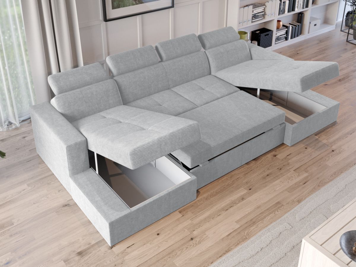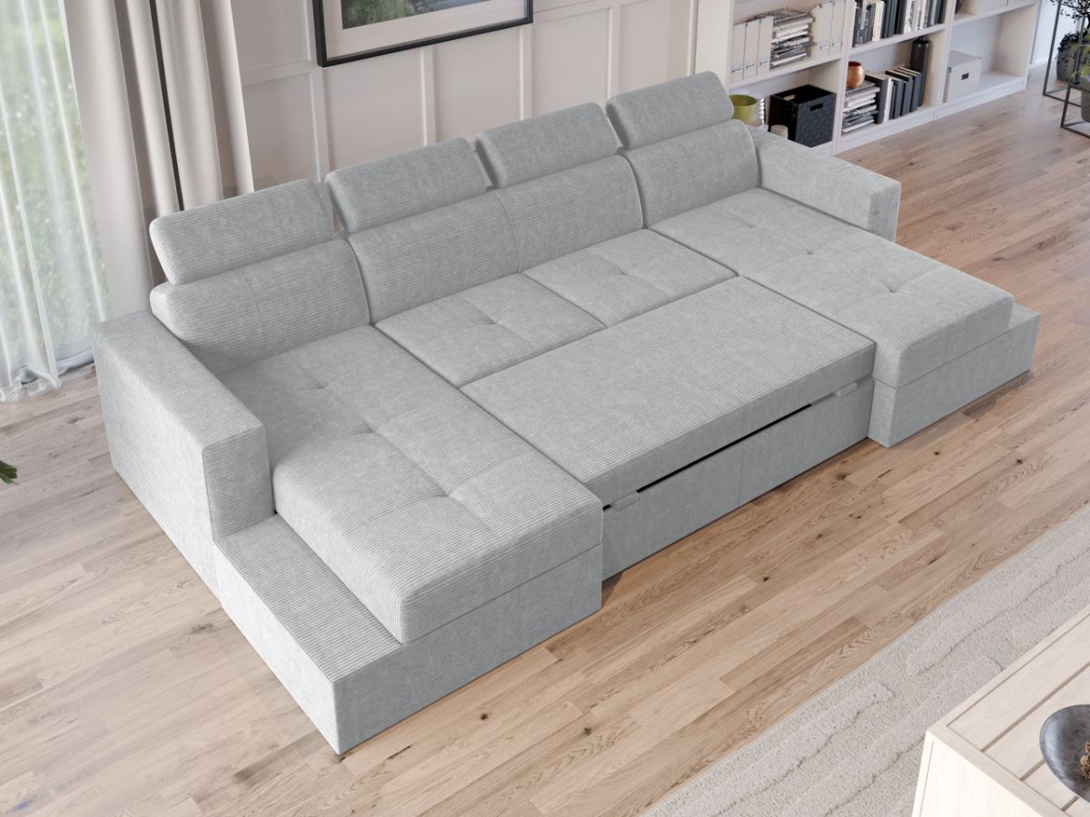 Oferta Coltar U Extensibil Paloma reiat Zoom New 20 Descopera Coltar U extensibil Paloma reiat Zoom New 20 ideal pentru a petrece seara cu intreaga familie sau doar pentru a te relaxa citind, vizionand filme sau socializand cu prietenii. Tetierele, pe langa aspectul aparte, au si un mecanism de reglare pe inaltime pentru un confort sporit. Se poate transforma intr-un pat confortabil de 282×125 cm in doar cateva minute. Are spatiu de depozitare generos, fiind prevazut cu 2 lazi de depozitare asezate sub cele doua sezlonguri. Acestea sunt potrivite pentru depozitarea lenjeriei de pat, a pernelor sau a paturii. Livrare gratuita si rapida, 4-10 zile lucratoare cu flota proprie Suntem producatori de tapiterii, fara intermediari Toate piesele de tapiterii au o garantie de 2 ani Sezutul este pe relaxa (arcuri elicoidale si poliuretan) si extensia este din poliuretan . Extensia de tip sertar este pozitionata sub sezutul coltarului. Se deschide ca un sertar, apoi se ridica salteaua din interiorul acestuia. Coltar U Extensibil Paloma reiat Zoom New 20 se incadreaza cu usurinta in majoritatea locuintelor indiferent de stilul acestora. Puteti alege din mai multe culori pentru stofa. Produsele disponibile le puteti vedea aici Modele Coltare U Paloma . Videoclipul contine alta nuanta decat cea de pe pagina produsului, acesta avand ca scop prezentarea familiei pentru a se reda in detaliu aspectul materialului. Dimensiuni Coltar U Extensibil Paloma reiat Zoom New 20 Lungime: 312 cm Latime: 164 cm Lungime intre brate: 282 cm Lungime extins: 282 cm Adancime sezut: 56 cm Adancime sezlon 134 cm Adancime extins: 125 cm, pe partea de canapea Inaltime cu tetiere: 96 cm Inaltime fara tetiere: 70 cm Inaltime sezut: 44 cm Tapiterie Coltar U Extensibil Paloma reiat Zoom New 20 Tapiteria produsului este din stofa reiat gri deschis – Zoom New 20 . Nuanta acestui produs nu este pretentioasa, mascheaza eventualele evenimente neplacute prin care se poate murdari sau pata si se integreaza perfect in majoritatea locuintelor. Atentie: Pretul afisat nu include alte accesorii sau obiecte de decor. Taburetele, pernele deco si draperiile se pot achizitiona optional. Intretinere: se recomanda ca praful sa se stearga cu un material textil moale (finet) umed si sa nu se curete cu agenti chimici (diluant, acetona). Imaginile sunt cu titlu de prezentare si pot avea mici diferente de nuante in functie de display. Dimensiunile sunt exprimate în centimetri și pot oscila între ± 50 mm. DESCARCA SCHITA DE MONTAJ