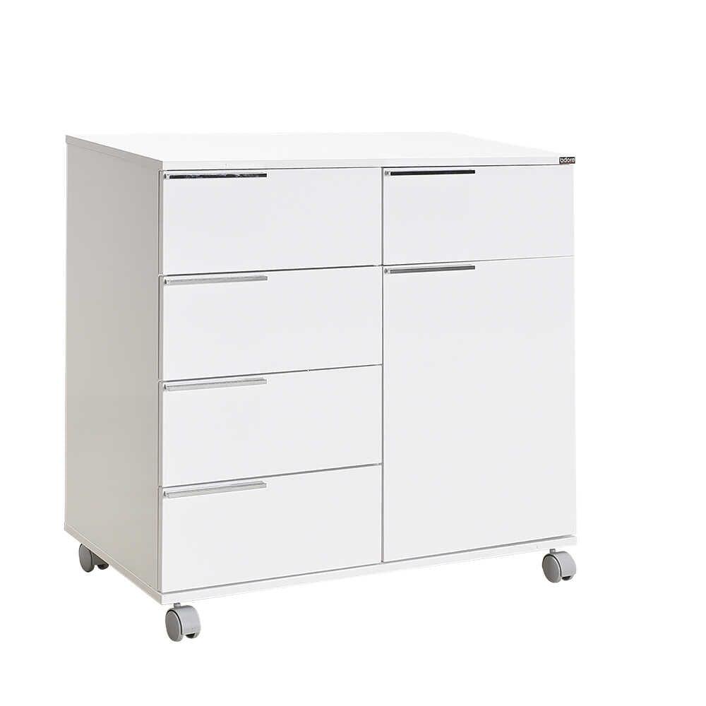 Adaugă un element de eleganță și funcționalitate în locuința ta cu această comodă rafinată. Cu designul său simplu și finisajele impecabile, această comodă este soluția ideală pentru a păstra ordine în spațiul tău de locuit. Cu o construcție solidă, comoda oferă loc suficient pentru depozitarea obiectelor personale și a altor lucruri importante. Versatilă și practică, această comodă se potrivește perfect în orice încăpere, de la dormitor până la living. Alege calitatea și stilul pentru locuința ta cu această comodă de încredere! Dimensiuni: 85 x 44 x 81 cm Culoare: Alb Lucios Specificatii: Dimensiuni proiectate pentru utilizare ergonomica Produs portabil cu roti rezistente de inalta calitate 5 Rafturi Manere metalice placate cu crom Mdf / Pal
