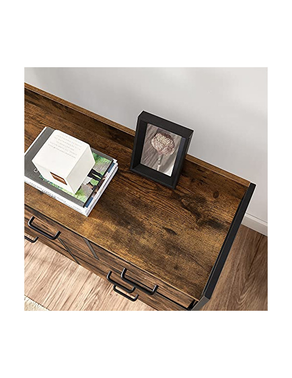 •Specificatii: •Color: Maro Rustic, Negru •Material: MDF •Dimensiuni: 98 x 28.5 x 85 cm (L x W x H) •Dimensiuni ale fiecărui sertar mic: 29.5 x 27.5 x 21.5 cm (L x W x H) •Dimensiuni ale fiecărui sertar mare: 46 x 27.5 x 21.5 cm (L x W x H) •Greutate: 12.5 kg •Pachetul contine:1 x Comodă – 1 x Kit de accesorii – 1 x Instrucțiuni