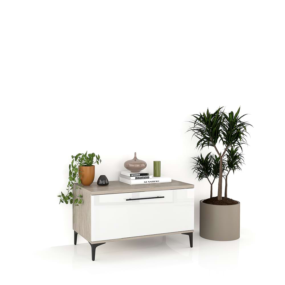 Comoda CUBO 90, 1U, Italian, Oak, Alb Gloss ofera un design modern si minimalist. Comoda este realizata din PAL de de grosime 16 si 25mm si fronturi din MDF Gloss 18mm. Cu dimensiuni generoase, ea ofera suficient spatiu pentru accesoriile media si obiecte decorative. Designul picioarelor inalte si subtiri, in stil italian, adauga o eleganta discreta si faciliteaza curatarea podelei din jur cu usurinta, chiar cu ajutorul robotilor casnici. Comoda CUBO 90, 1U, Italian, Oak, Alb Gloss este un element modular de mobilier de living ca poate fi personalizat. Mobilier configurabilpersonalizezi decorul fronturilor (usilor)personalizezi stilul – Clasic, Italian Dimensiuni lungime: 90 cm adancime: 50 cminaltime: 53 cm MaterialePAL melaminat 16, 25mm OakMDF Alb Gloss 18mmCant ABS 0,4mm, 1mm, 2mmGlisiere cu amortizare HafeleManer metalic 33cm – antracit – HafelePicioare metalice antracit 13cm Garantie 24 luni Livrare Gratuita in toata Romania* Produsul trebuie preluat de la masina.* Corpurile de iluminat si celelalte accesorii de decor nu sunt incluse in pret….