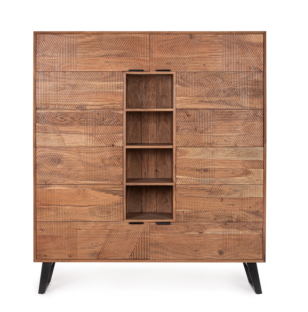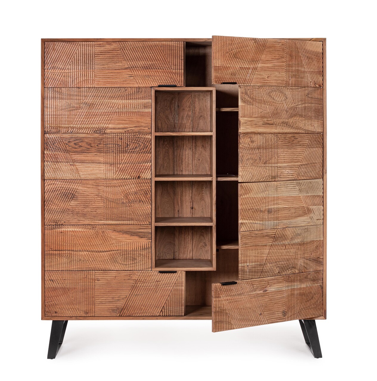 MentiuniCadru din lemn de salcam, panouri din spate si partea de jos a sertarelor din placaj.Usile din fata si sertarele sunt incrustate si realizate manual.Finisaj acrilic de protectie.Manere si picioare din otel.Produsul necesita asamblarea picioarelor.