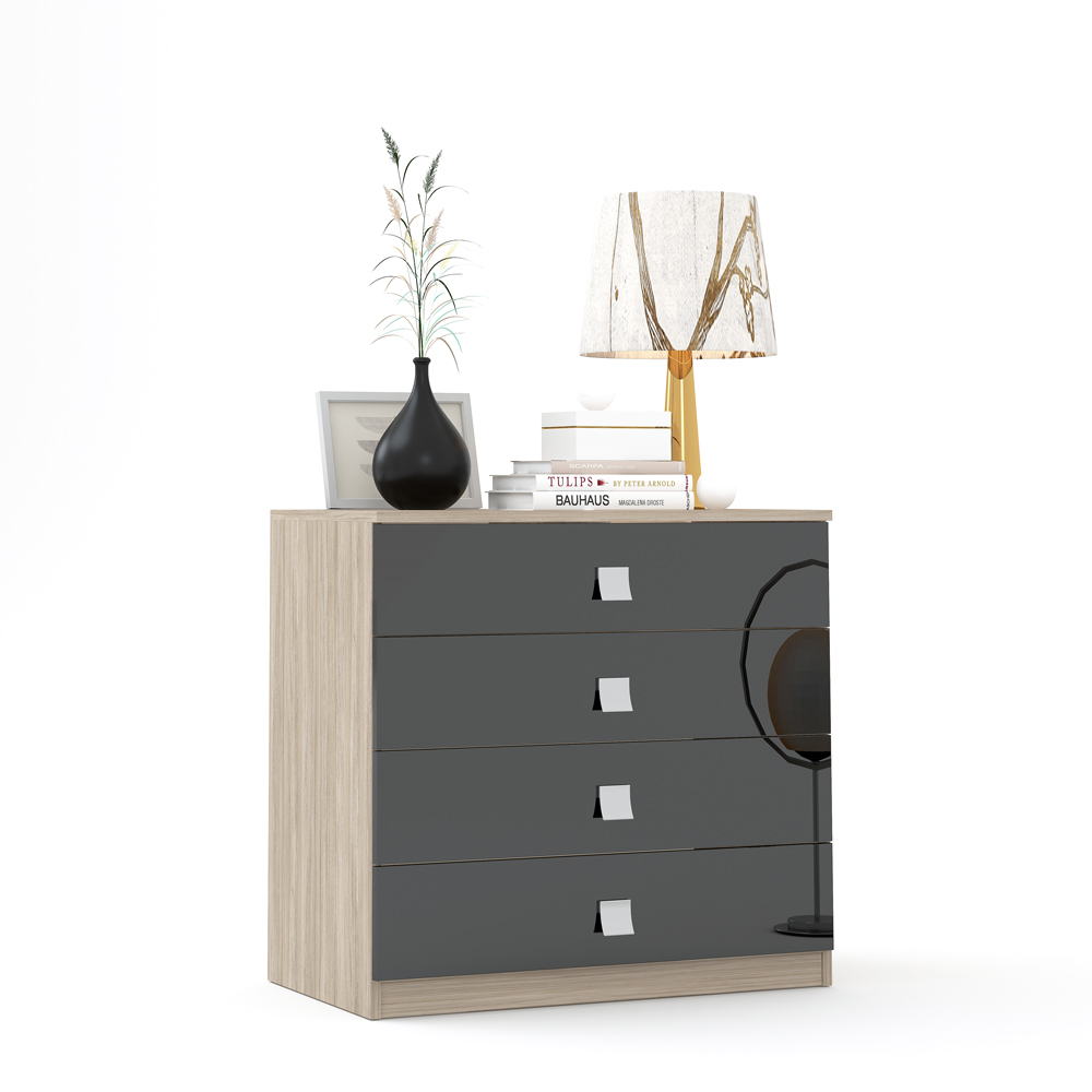 Comoda LINEA 4 sertare, Oak, Negru Gloss