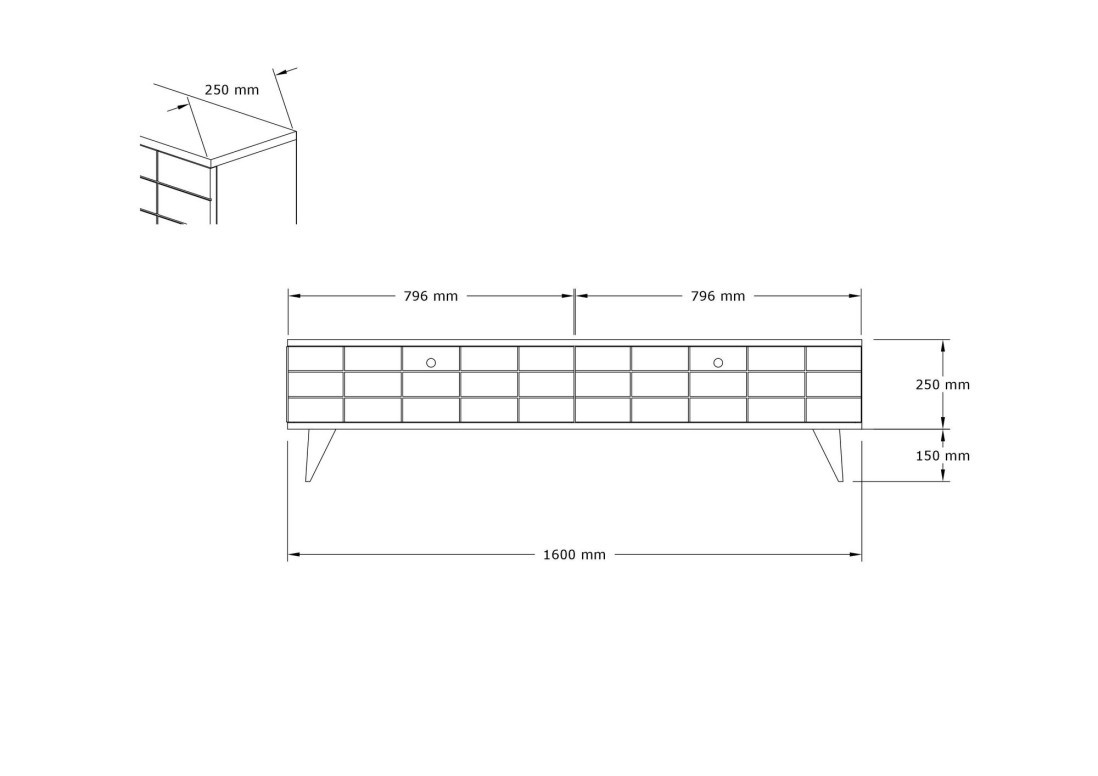• 100% PAL melaminat •Grosime PAL: 18 mm •Solid Wood Door •Picioare din plastic •Lățime: 160 cm Inălțime: 35 cm Adâncime: 25 cm •Numeroase rafturi •Spațiu de depozitare suplimentar