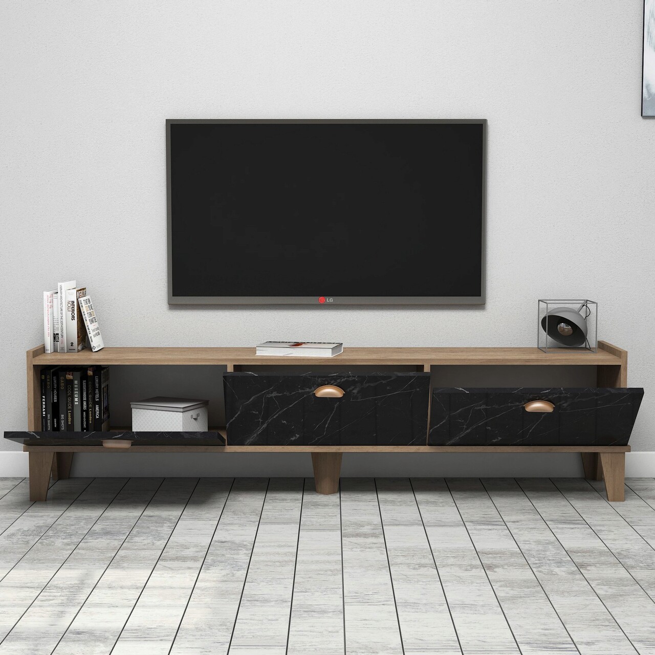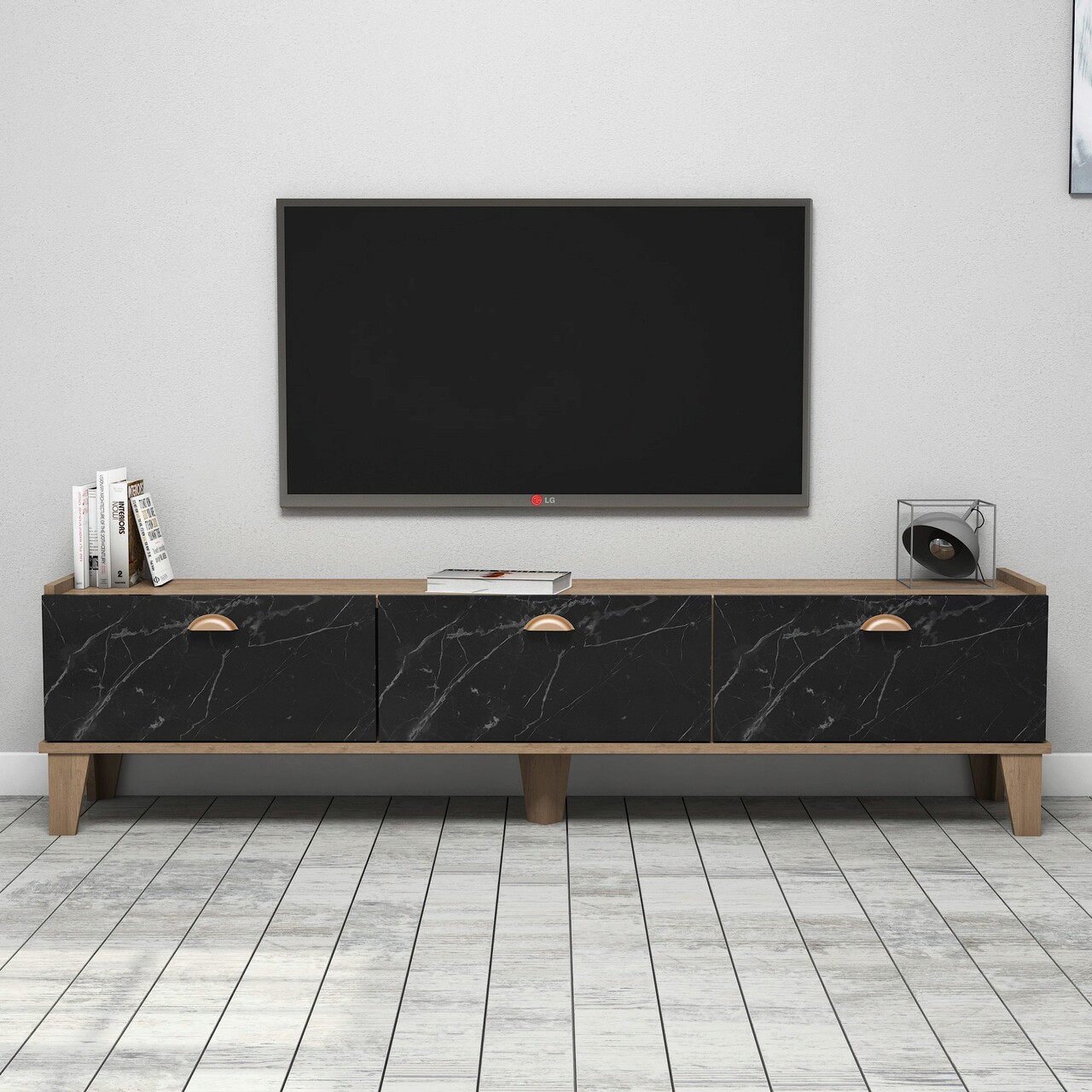 Comoda TV, Almaren, Sumer E3630, 178×44.8×34.6 cm, PAL, Stejar / Marmură