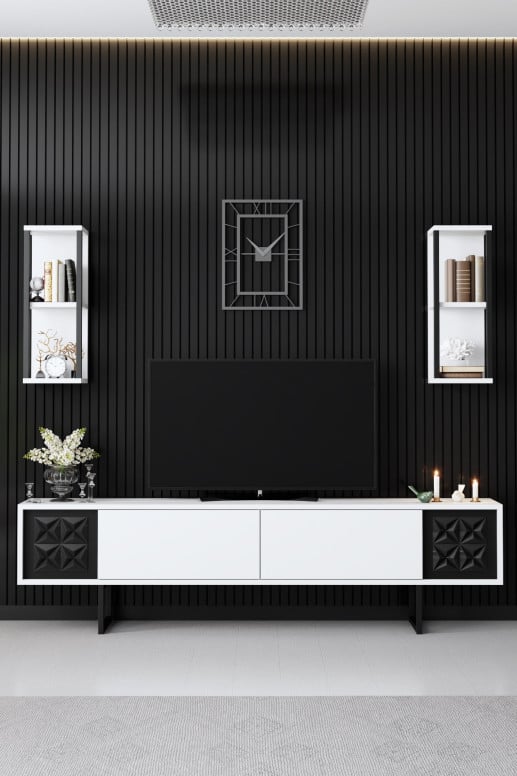 Comodă TV Black, Alb- Negru