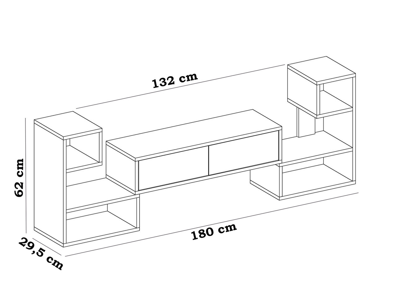 PALGrosime: 18 mmLatime: 180 cm Inaltime: 62 cm Adancime: 29,5 cmRafturi numeroasePoate fi fixat pe perete