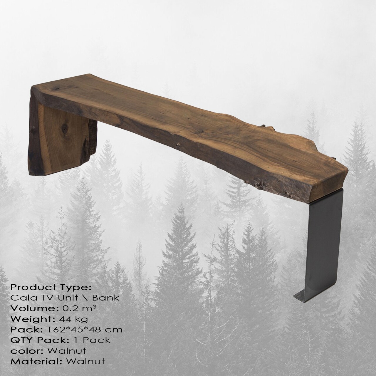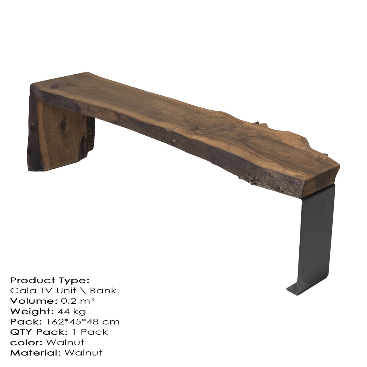 Compozitie material: lemn de nuc, picioare din metal.Grosime: 7 cm.Produs lucrat manual.