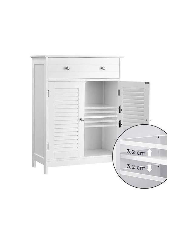 •Specificatii: •Culoare: Alb mat •Material: MDF •Dimensiuni: 60 x 30 x 80 cm (L x W x H) •Greutate: 13.1 kg •Pachetul contine:1 x dulap de baie1 x kit anti-răsturnare1 x kit de accesorii1 x instrucțiuni (EN, DE, FR, ES, IT)