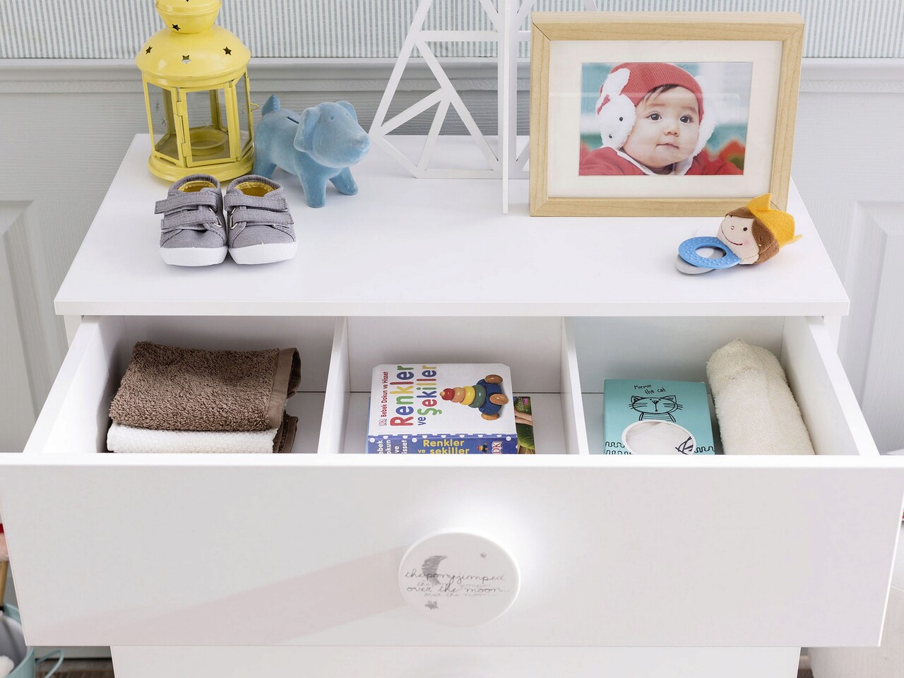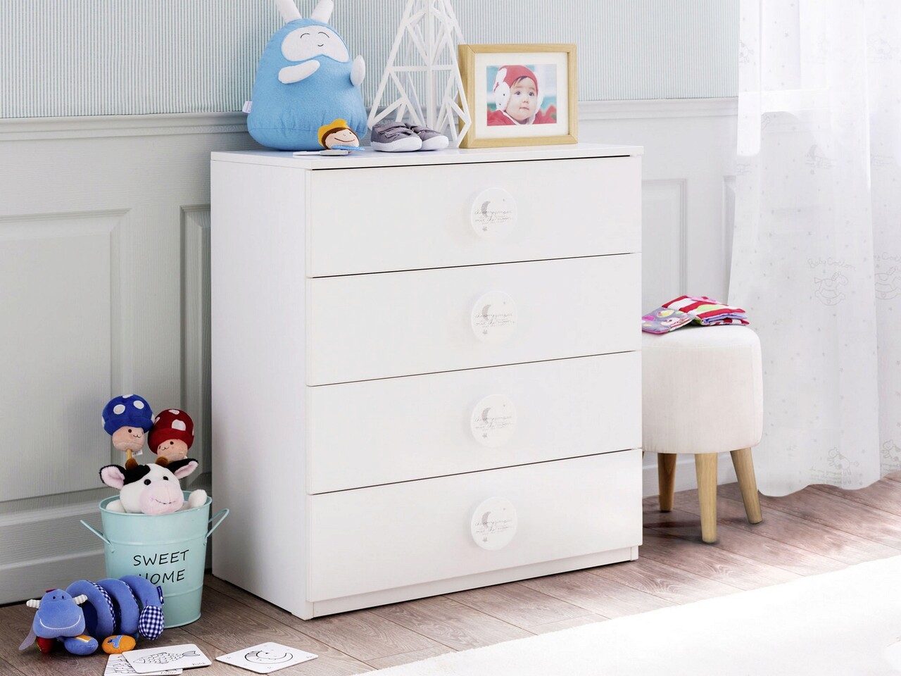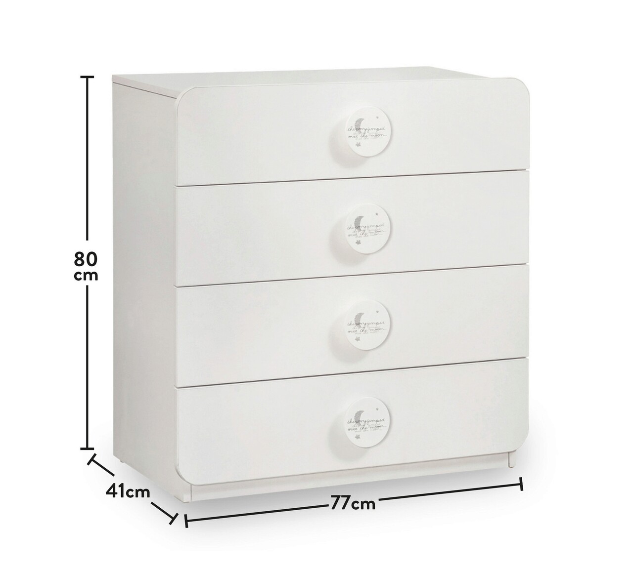 PALGrosime: 18 mmLatime: 77 cm Inaltime: 80 cm Adancime: 41 cm4 sertareSertare cu închidere moaleFiecare sertar are o capacitate de 15 kgMateriale prietenoase pentru bebelusi/copiiNecesita asamblareInstructiuni incluse